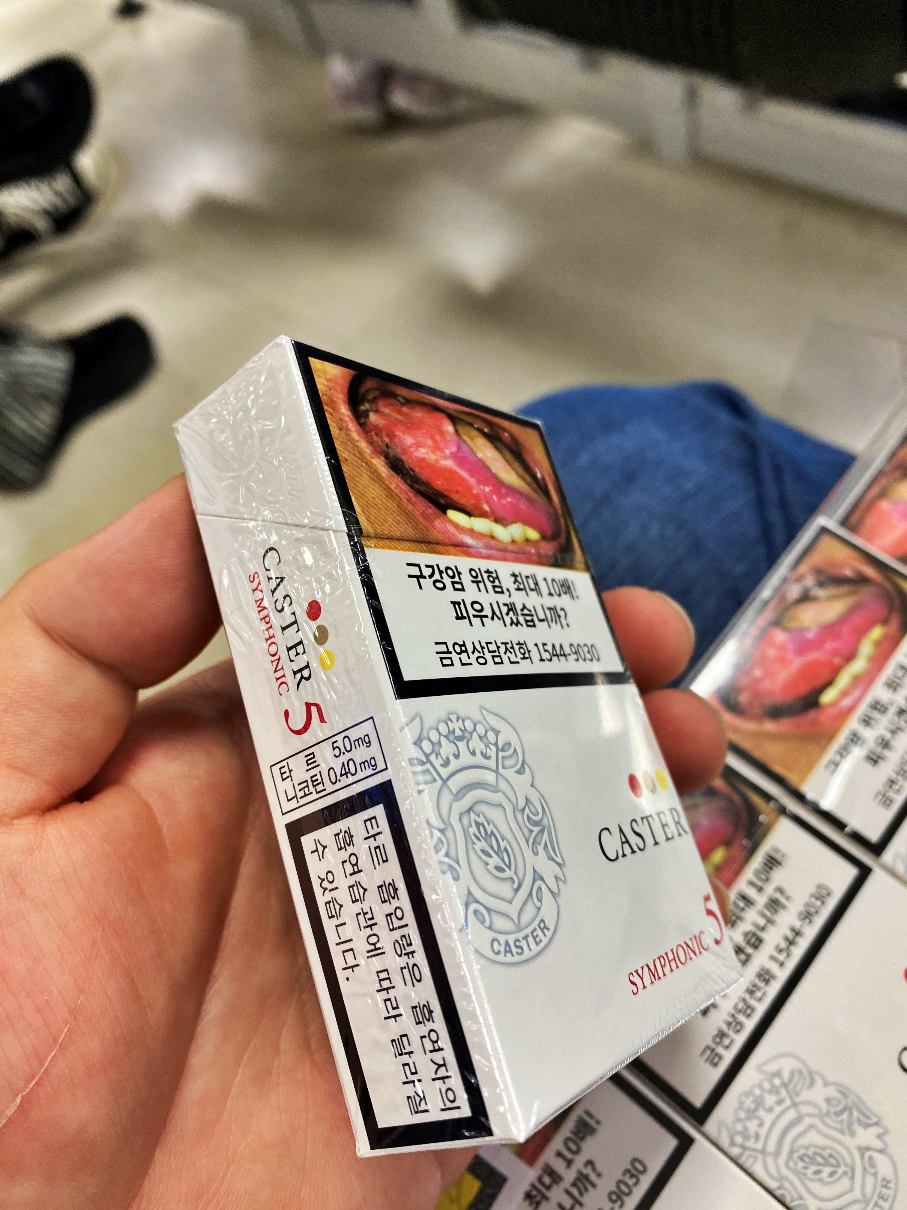 저는 처음 들어보는데 SNS에 올리니 생각보다 많은 사람들이 이 담배에 대해 익히 잘 알고 있는 느낌입니다. 이 담배를 피워본 흡연자들은 극찬을 아끼지 않았고, 좋아요를 찍는 사람들도 죄다 일본에서 살다 왔던 사람들이나 일본인 아저씨들이네요. 정확히 말하면 캐스터 심포닉 5mg. 담배를 피우지 않다보니 이게 무슨 맛이라고 말은 못하겠다만, 면세점 직원도 면세점에 오면 꼭 이것만 찾는 손님들이 있다고 하네요.