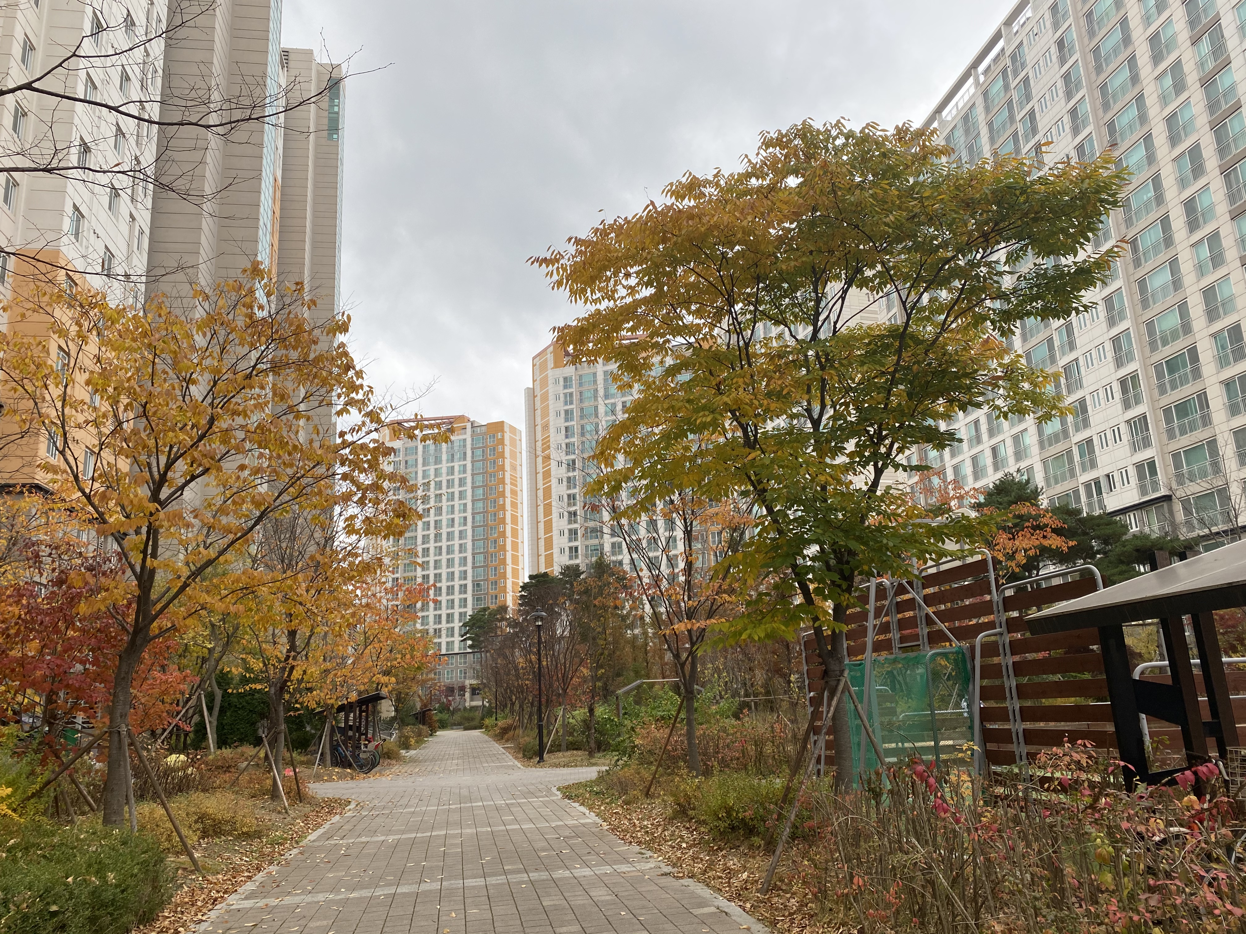 항상 지하로만 다니다가 오늘 아파트단지 지상으로 해서 집에 올라왔는데, 낙엽이 지고 있다.