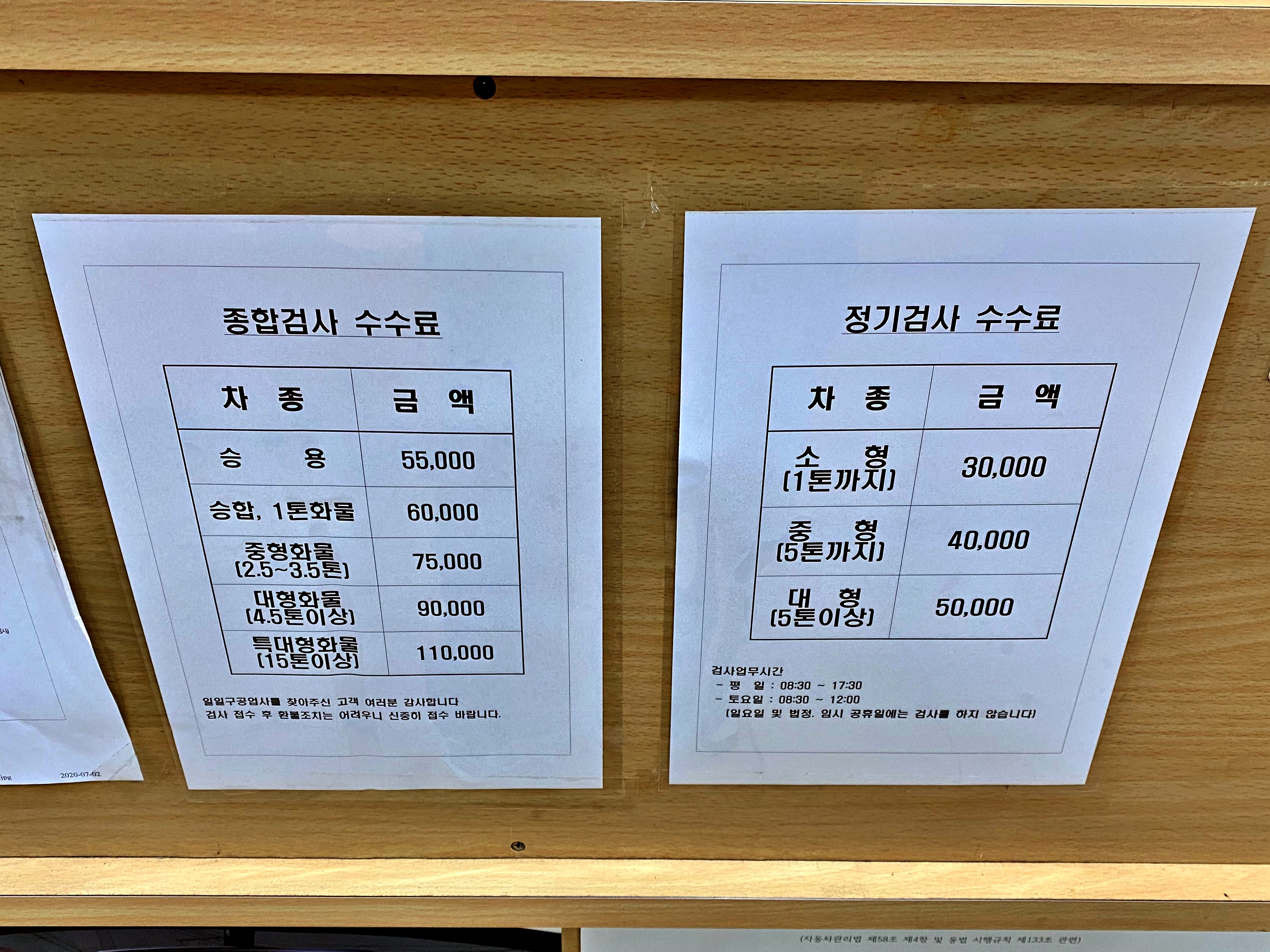 교통안전공단 검사소는 경차와 소형차 중형차 그리고 그 이상으로 나뉩니다만, 공업사에서 운영하는 민간검사소는 공단 검사소보다 차량 분류가 단순합니다. 물론 비용도 민간 검사소가 공단보다 조금 비싼데, 이 검사비용은 각 공업사마다 딱히 정해진 가격이 없어 천차만별입니다.