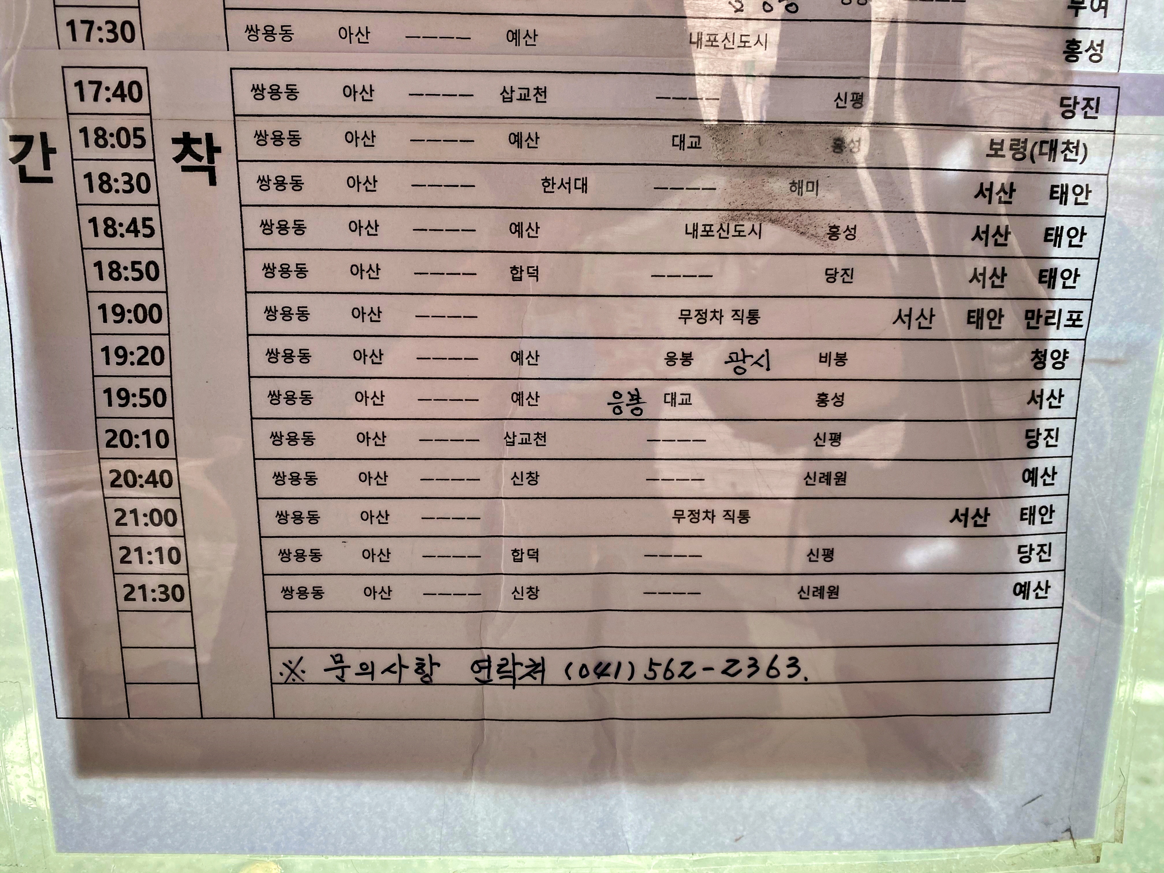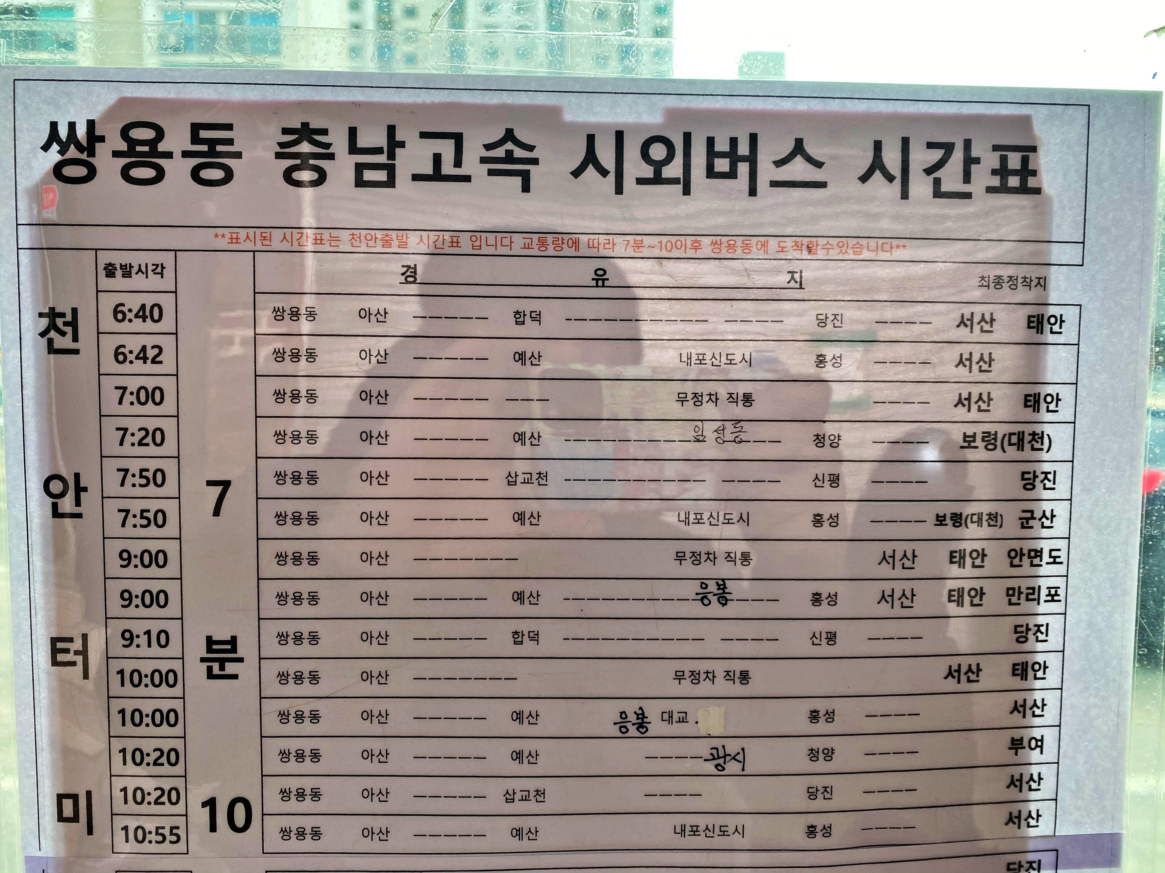 2018/07/12 - [티스도리의 여행이야기] - 천안 쌍용동 시외버스정류소 시간표 (2018년 7월 현재)