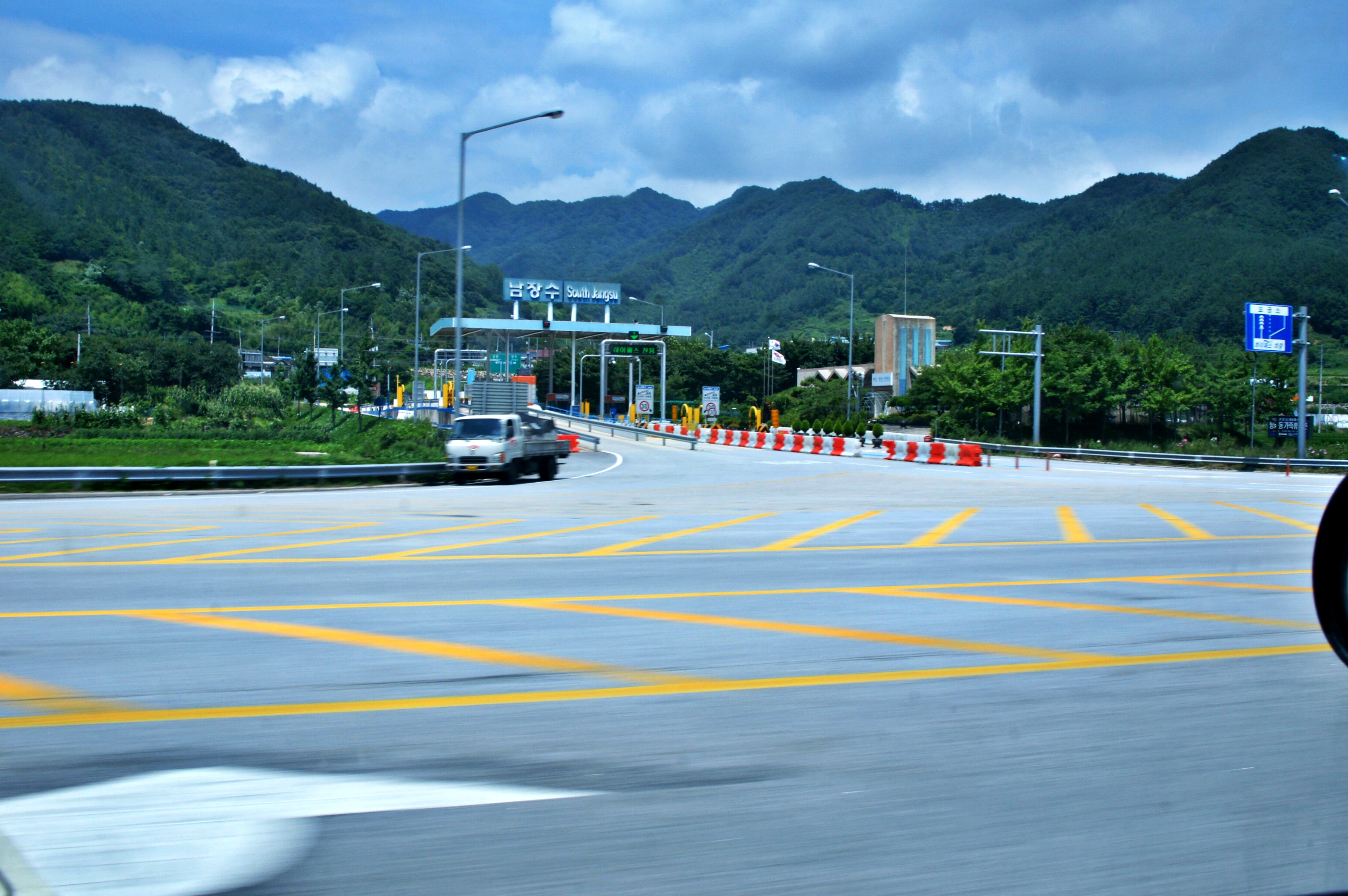 중앙분리대 대신 주황색 교통차단봉이 중앙선을 대신하고 있습니다. 가끔 속도를 이기지 못하고 중앙선을 넘어오는 차량들로 대형사고가 발생하곤 했습니다. 뭐 추월을 위해서도 봉을 넘어 역주행을 하는 차량들의 모습도 있었지요. 지금은 그저 추억 속 고속도로일 뿐입니다.