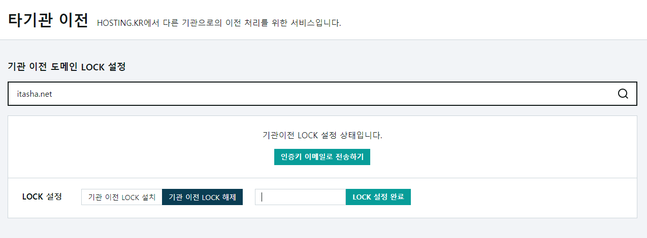 LOCK은 풀었는데, 호스팅케이알은 타기관 이전을 위한 인증코드를 확인하는 페이지를 숨겨놨습니다.