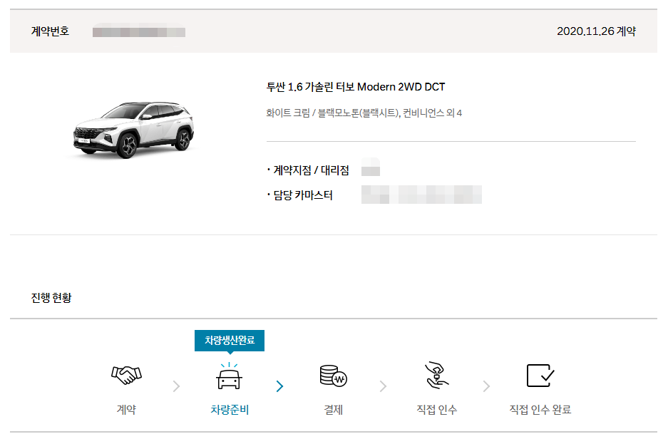 생산이 22일에 시작되었고, 정확히 일주일만에 생산을 마쳤습니다. 이 포스팅을 작성하는 시점에서 곧 주인을 만나게 될 투싼은 완전히 생산된 이후 맞이하는 첫날밤을 보내고 있겠죠. 차는 이미 만들어졌고 결제까지 마치면 차대번호 확인도 가능하리라 생각됩니다.