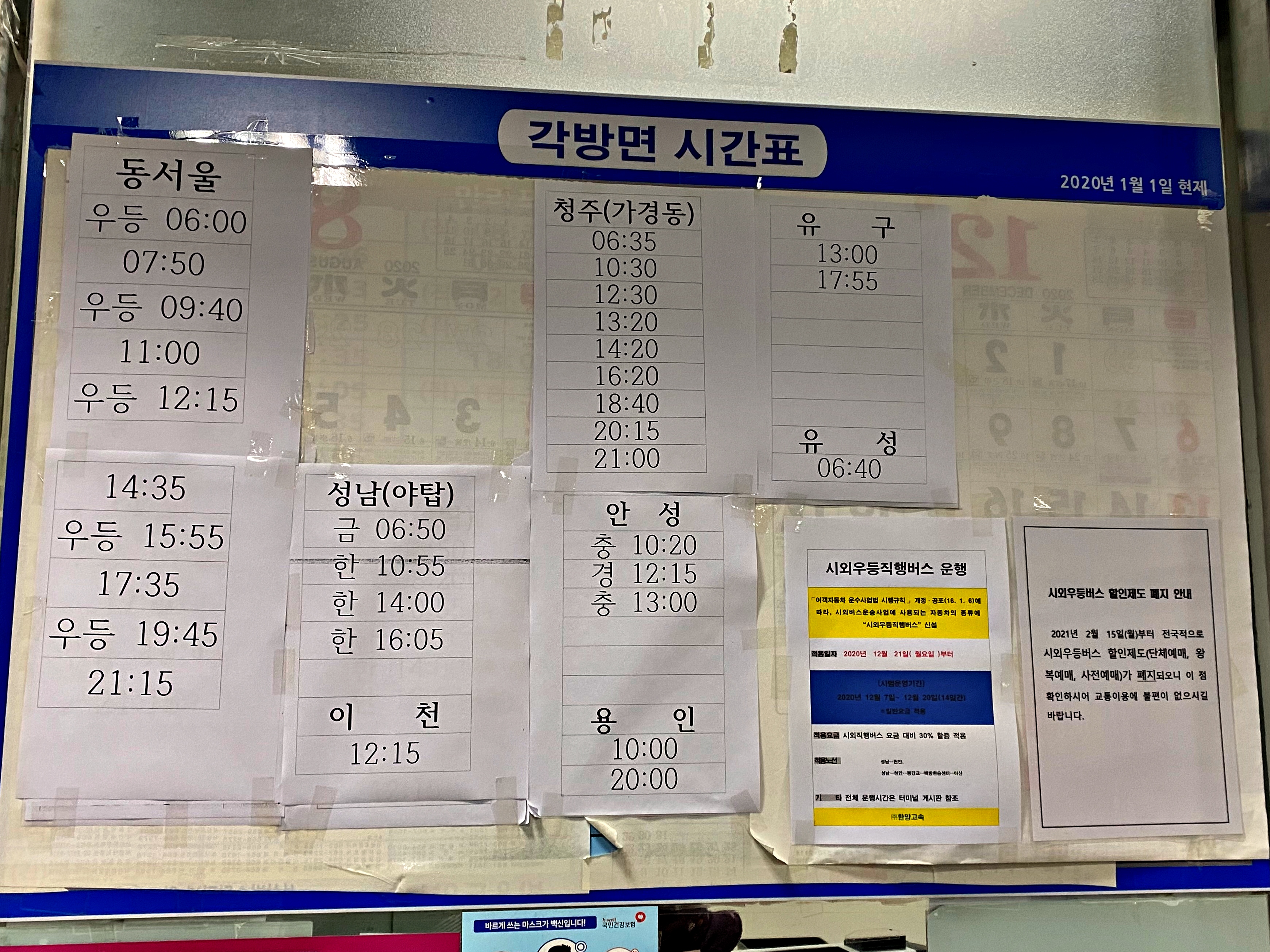 대부분 천안터미널을 경유하거나 천안터미널을 거쳐 아산터미널로 들어옵니다. 코로나19로 인한 일부 노선의 운행중단이 1년 가까이 이어지고 있습니다. 대체 언제쯤 끝을 볼 수 있을지 암담합니다.