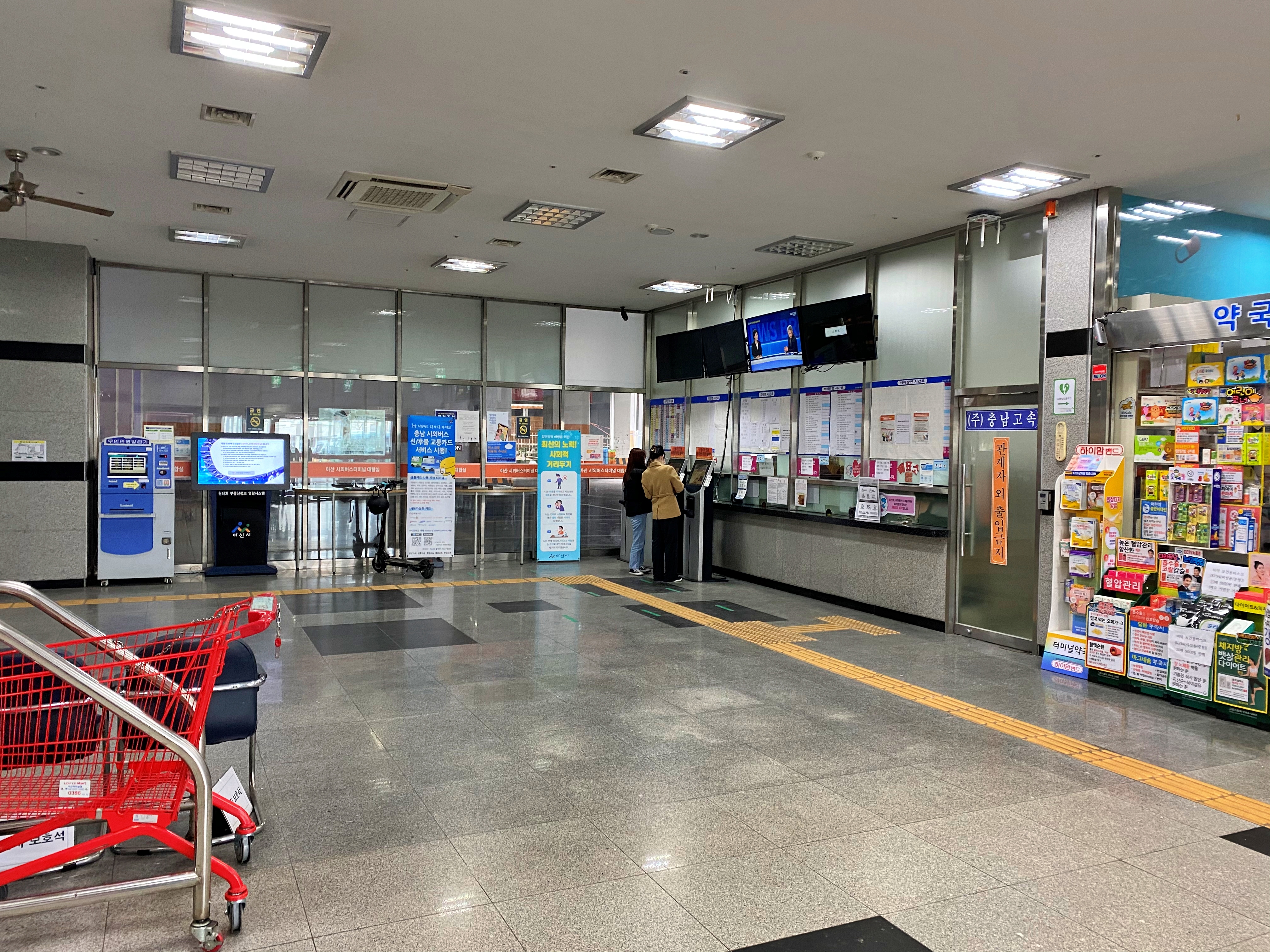 매표소와 약국이 보이고 그 맞은편으로 대합실과 작은 분식점이 전부입니다.