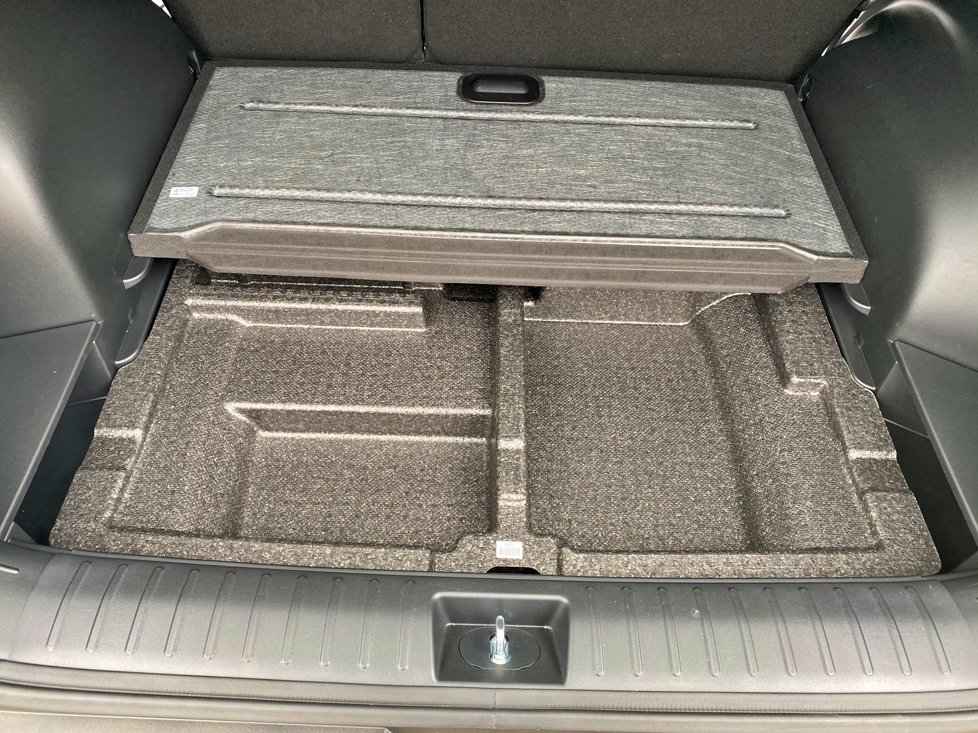 커버를 완전히 열면 안쪽으로 콤프레셔와 리페어리킷트가 보입니다. 그리고 수납함을 들춰내도 그리 깊지 않습니다. 그렇다 보니 자잘한 물건들만 여기 숨겨놓고 논슬립 재질의 트렁크 매트를 따로 구입하여 사용해야 합니다.