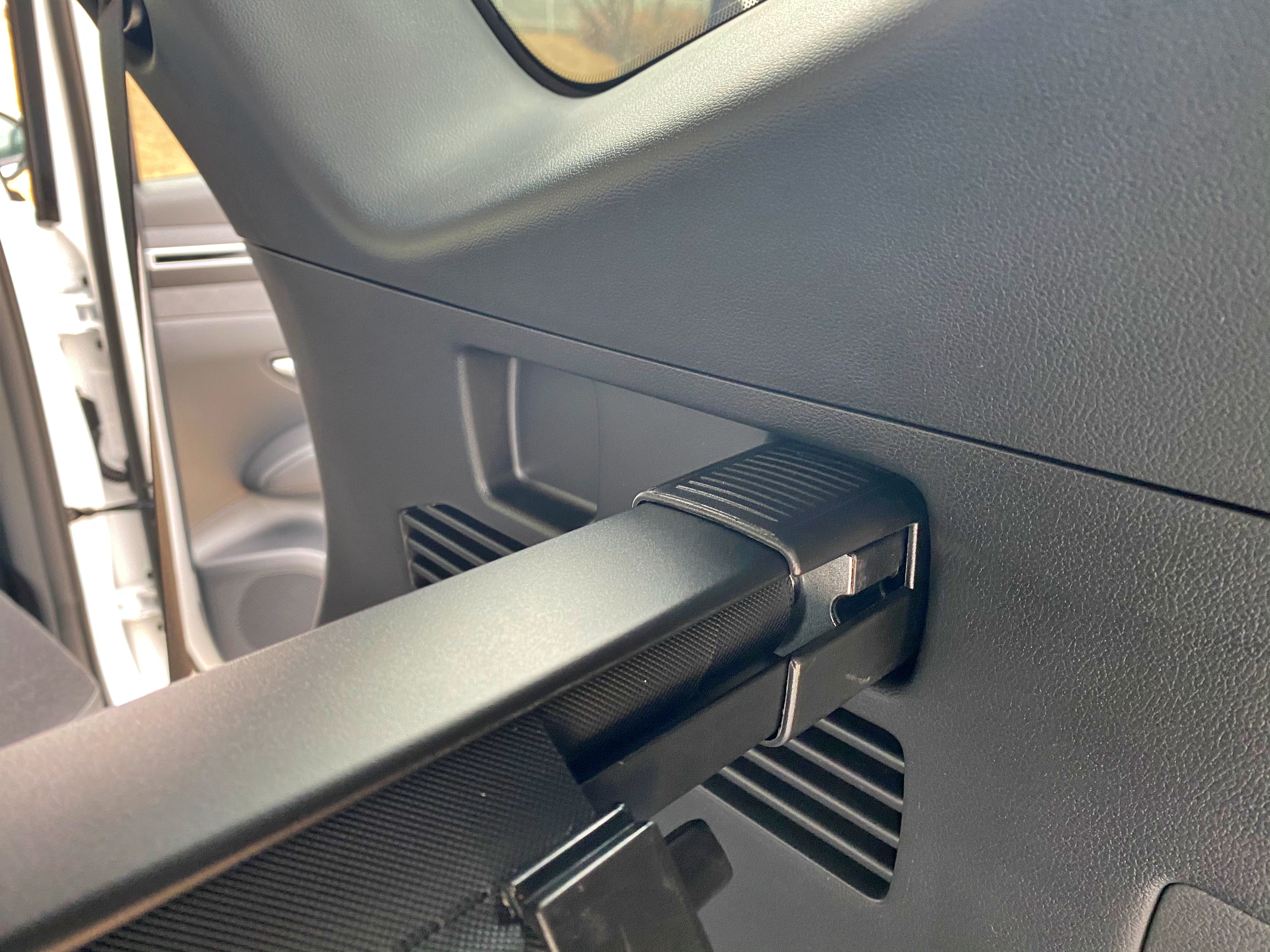 장착 시 내장재에 상처가 생기는 것을 방지하기 위해 부직포가 붙어있습니다. 그냥 편하게 꾹 눌러서 자리에 맞춰 끼우기만 하면 됩니다. 어려울 것도 없고 대단한 것도 없습니다. 바깥쪽으로 옮겨달고 싶다 싶으면 고정대를 잡아당겨 앞에 끼우기만 하면 됩니다.