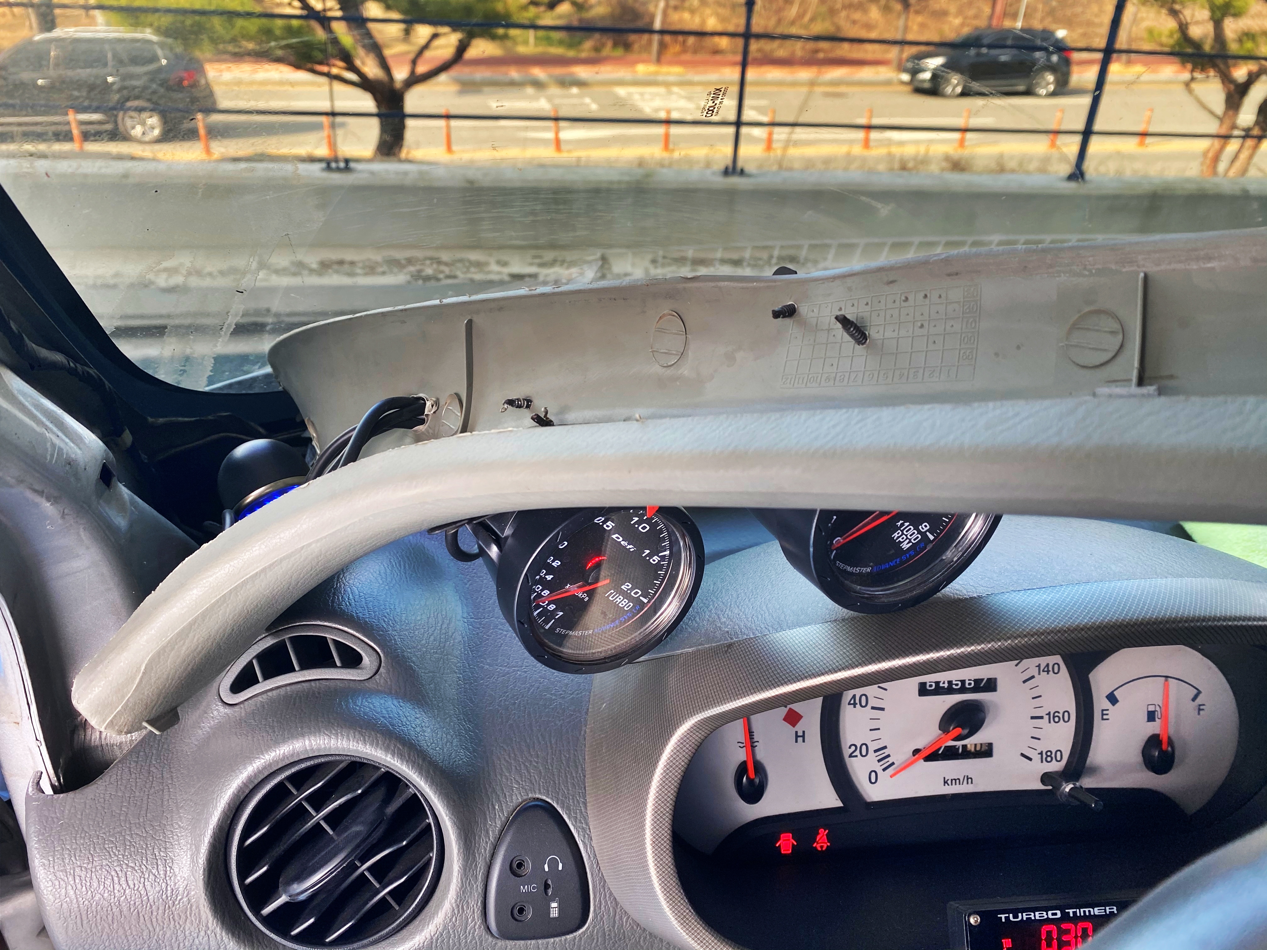 게이지를 장착한다고 트림에 구멍을 뚫어놓은 모습이 보이네요. 언제 날을 잡아 싹 다 정리하던지 다 그냥 빼버리던지 해야겠습니다. 터보차라 있는게 좋긴 한데 그래도 너무 지저분합니다.