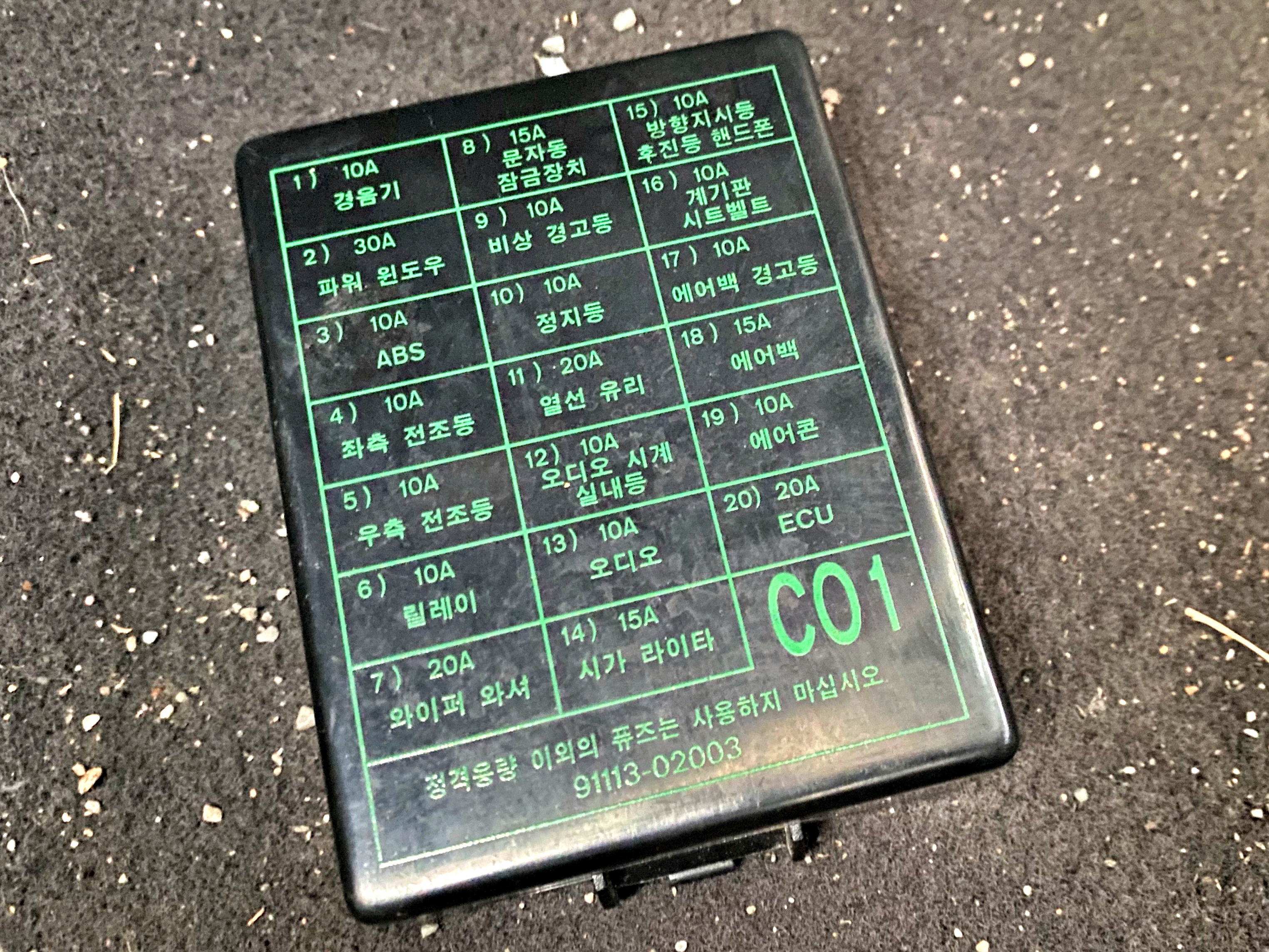 어디다 물릴까 고민하다가 어짜피 키온을 해야 전원이 들어오는 에어백 경고등에 블랙박스 배선을 물리기로 합니다. 아반떼도 그랬고 요즘 차들은 블랙박스 장착을 염두한 상시용 예비 퓨즈가 있다고 합니다. 요즘차들은 거기다 배선을 물린다고 하더군요.