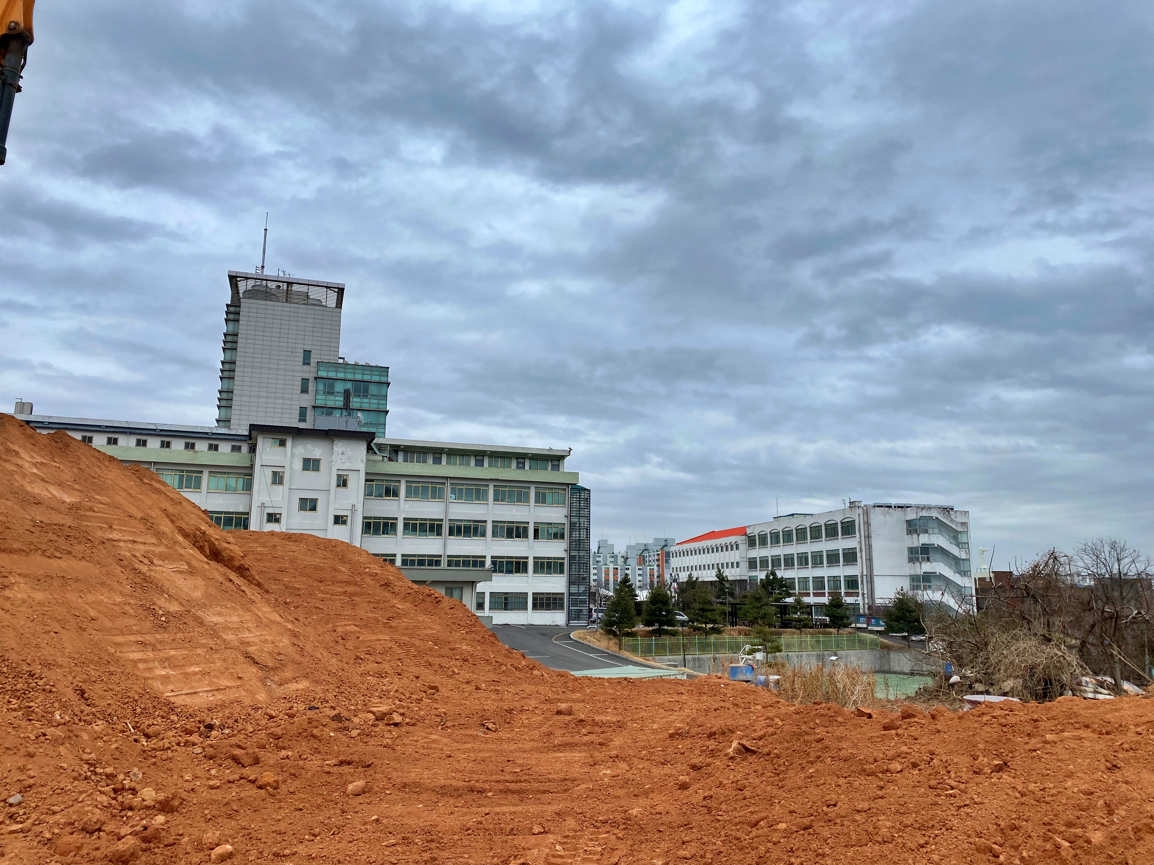 학교 부지 위 언덕으로 행복주택 건설공사가 한참 진행중입니다.