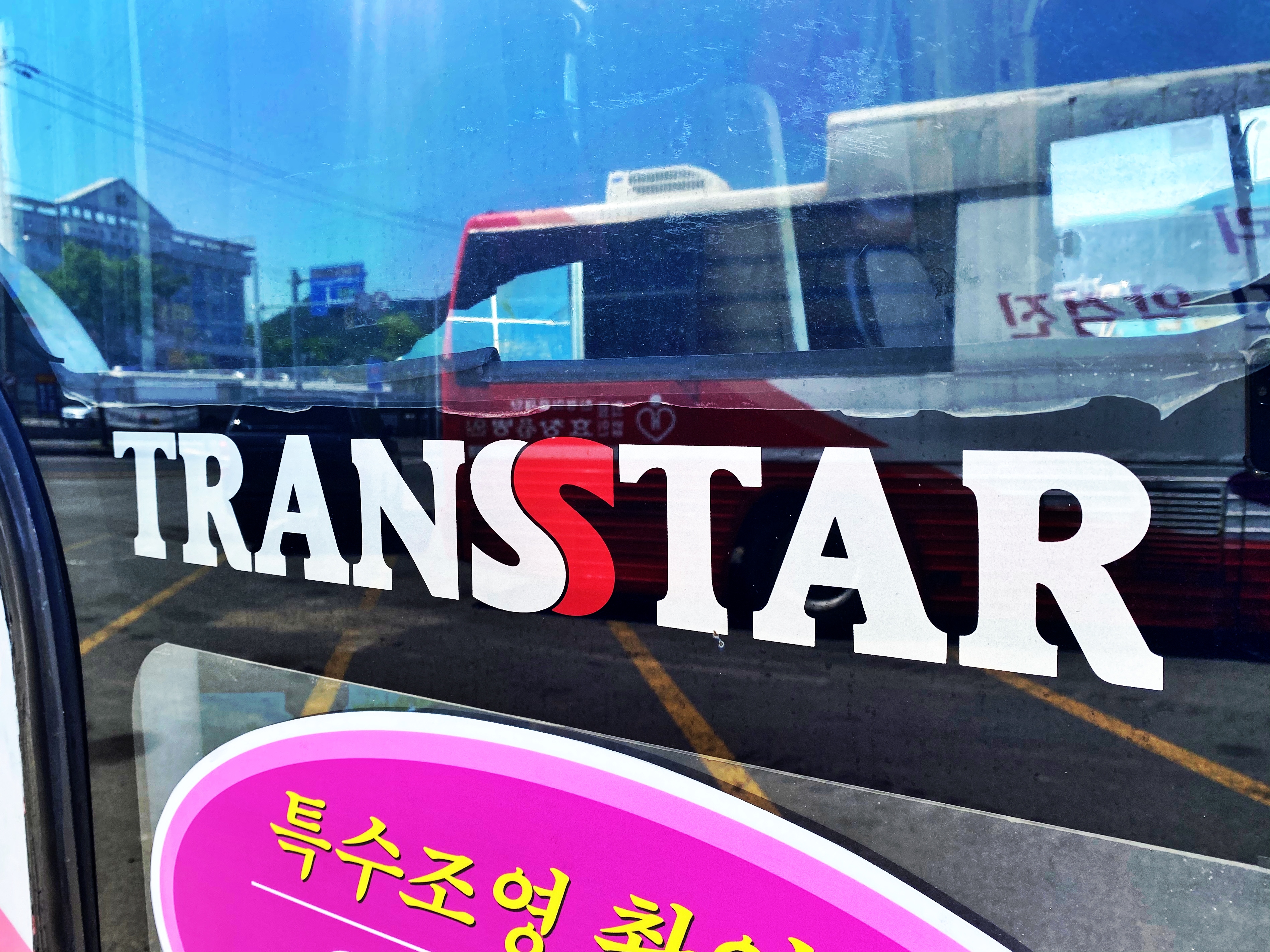 흔히 'S' 하나를 생략하고 'TRANSTAR'라고 부릅니다만, 정식 명칭은 S가 두 개 들어갑니다. 당시 대우 로얄크루저도 그랬고 스윙도어에 차량의 명칭을 붙여놓는 경우가 많았습니다. 차체에 붙은 트랜스타 레터링은 이미 다 사라졌지만, 출입문에 붙은 스티커는 조금 떨어지는 했어도 원형 그대로 남아있습니다.