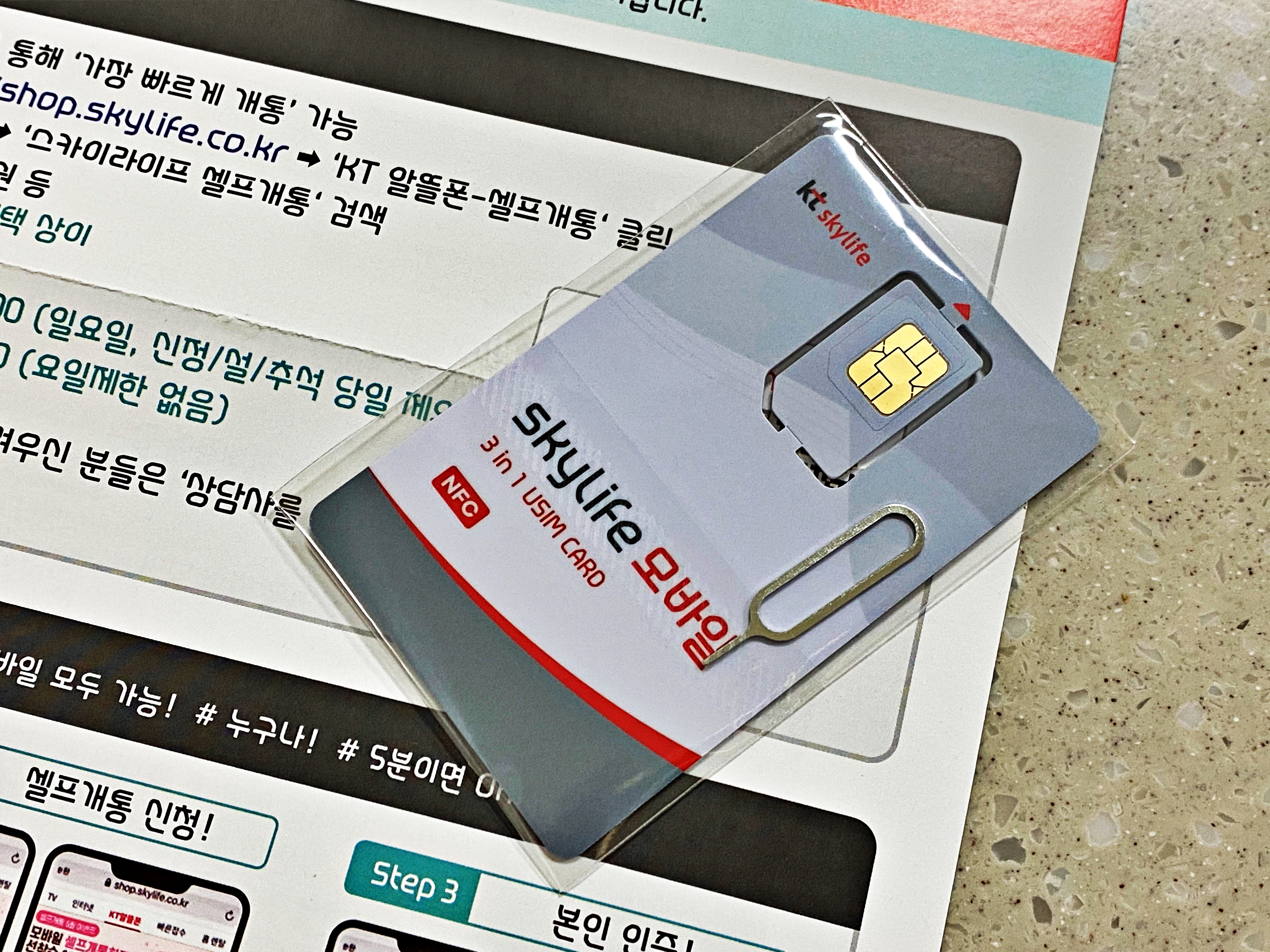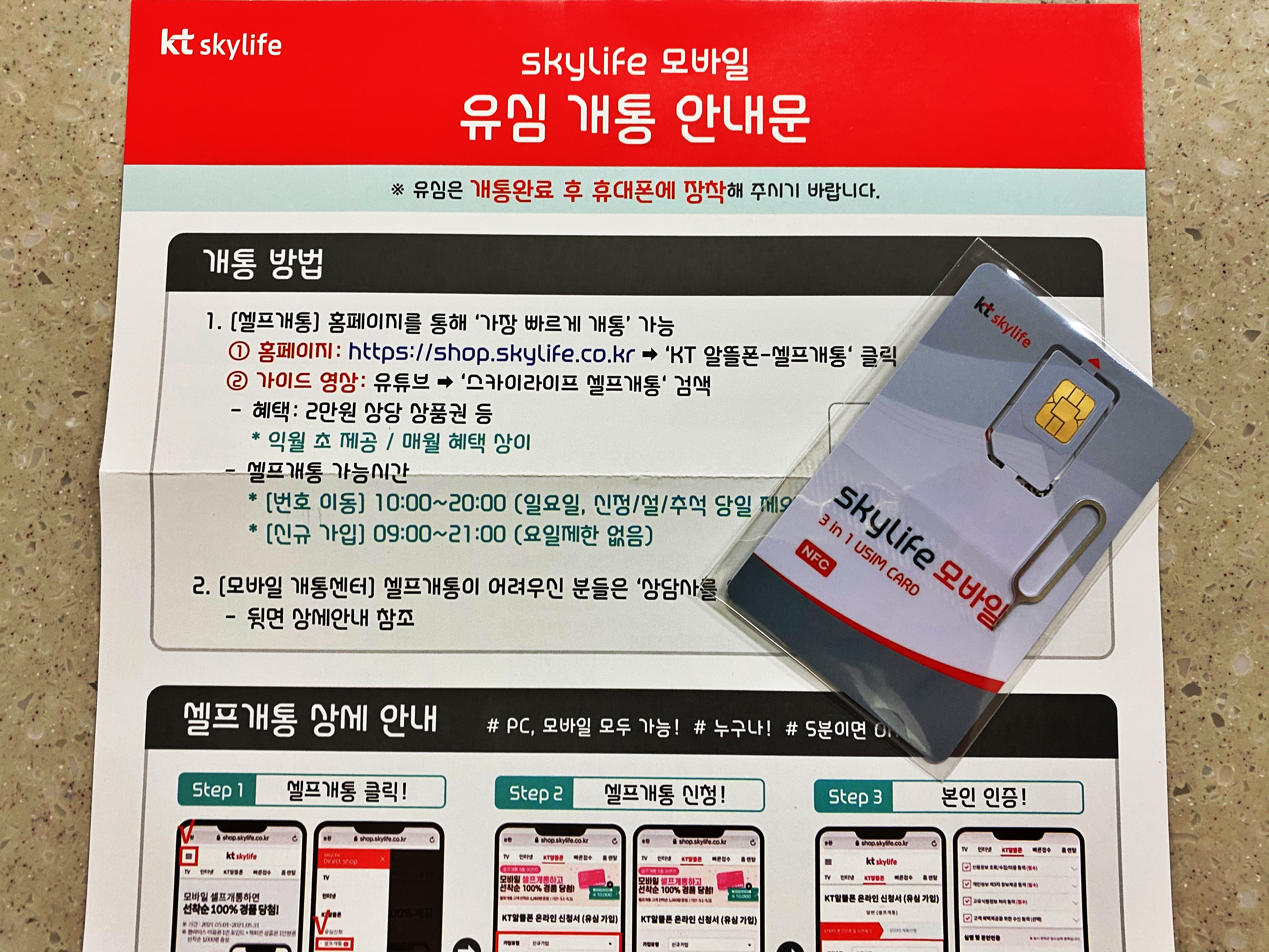 유심 개통 안내문과 함께 유심카드가 왔습니다.