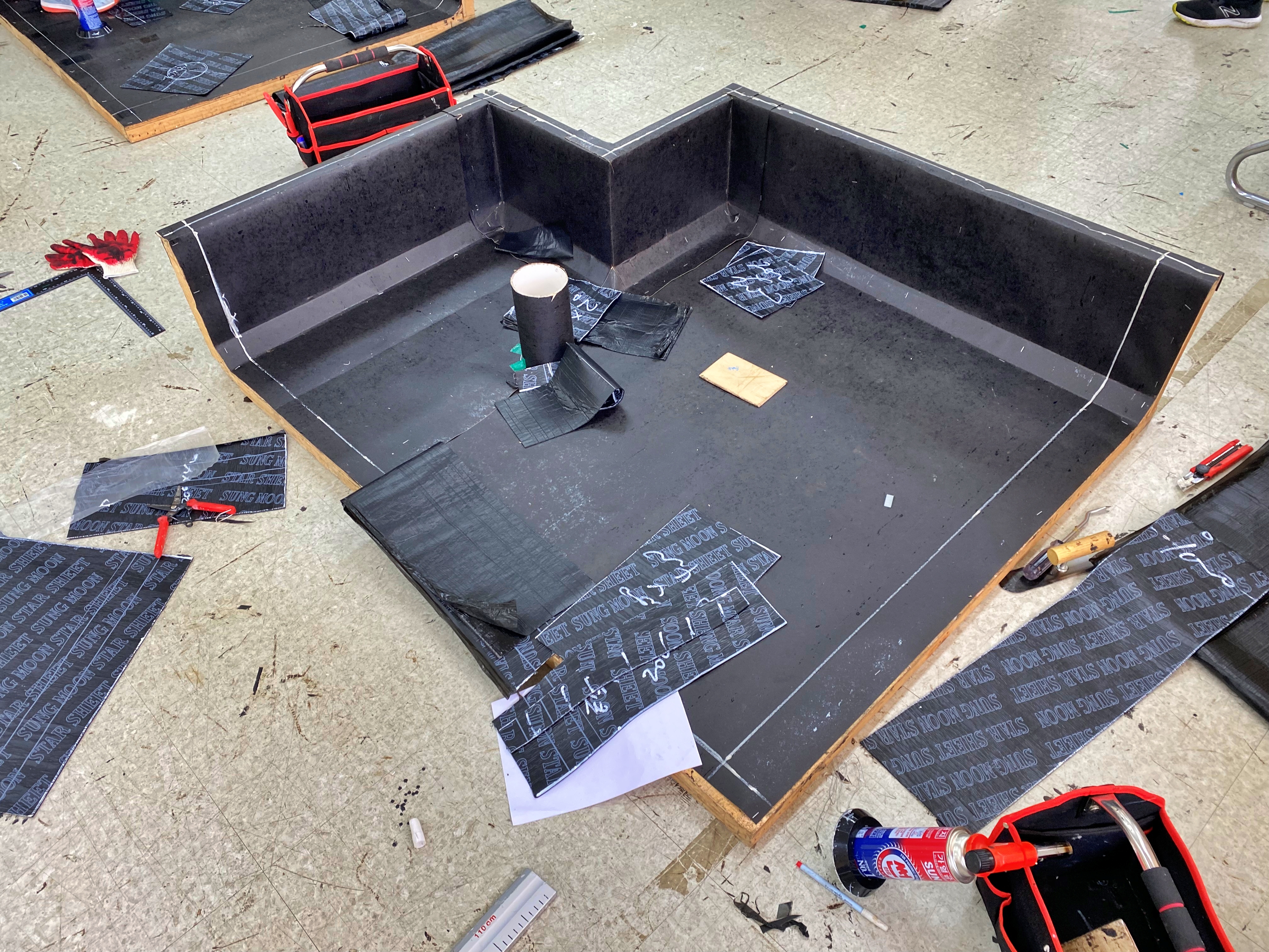 아 설명은 쉽습니다만, 펠트지를 어떻게 잘라 붙여야 하는지 선은 어느 규격으로 그려야 하는지 그 치수를 모두 암기해야 합니다. 거기에 방수시트는 여러 조각으로 재단해야 하는데 그 규격도 다 암기해야 합니다. 머리 터져나가는 건 둘째치고 작업에 대한 이해도가 떨어지니 따라가기 어려웠습니다.