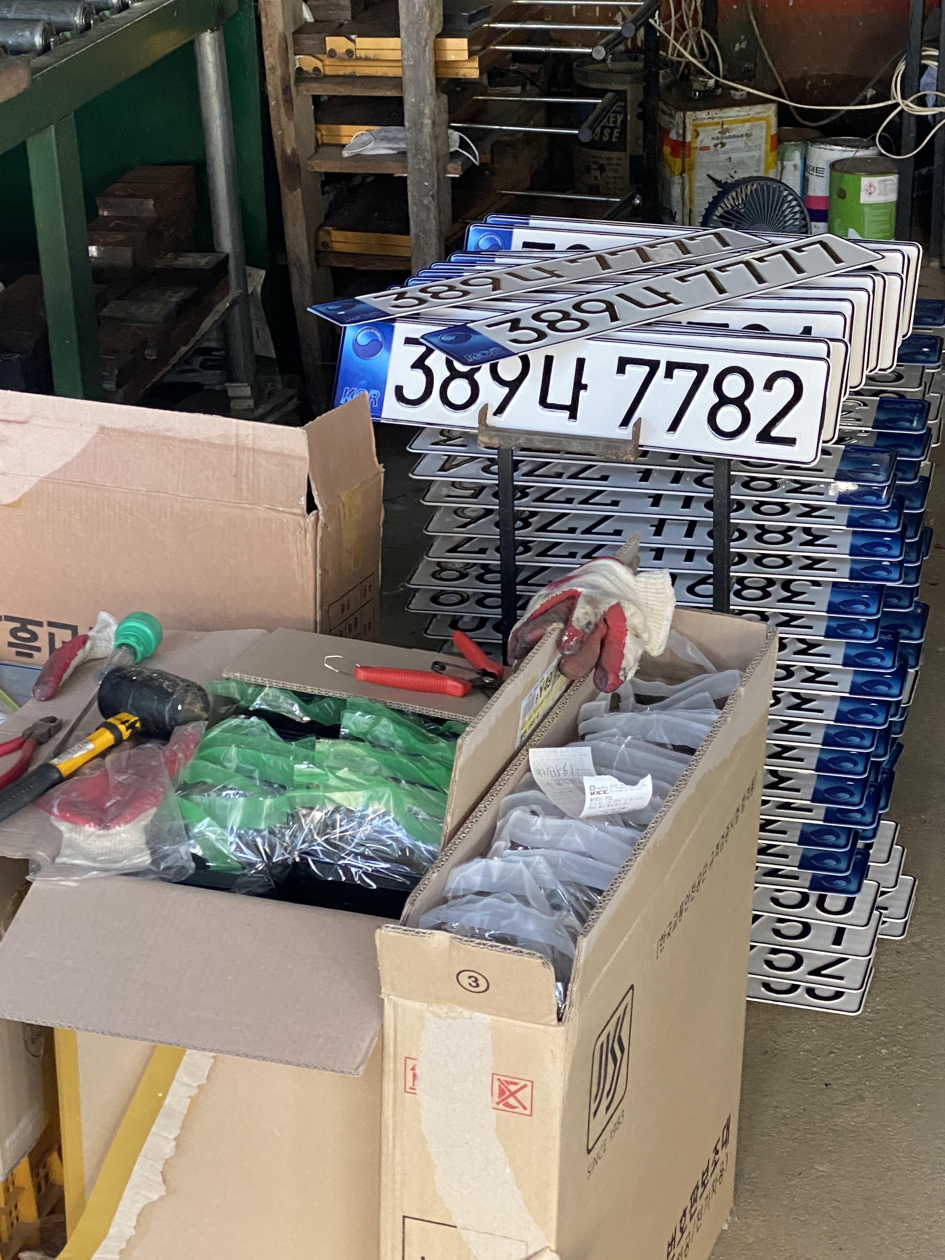 본격적으로 번호판 부착작업이 진행됩니다.