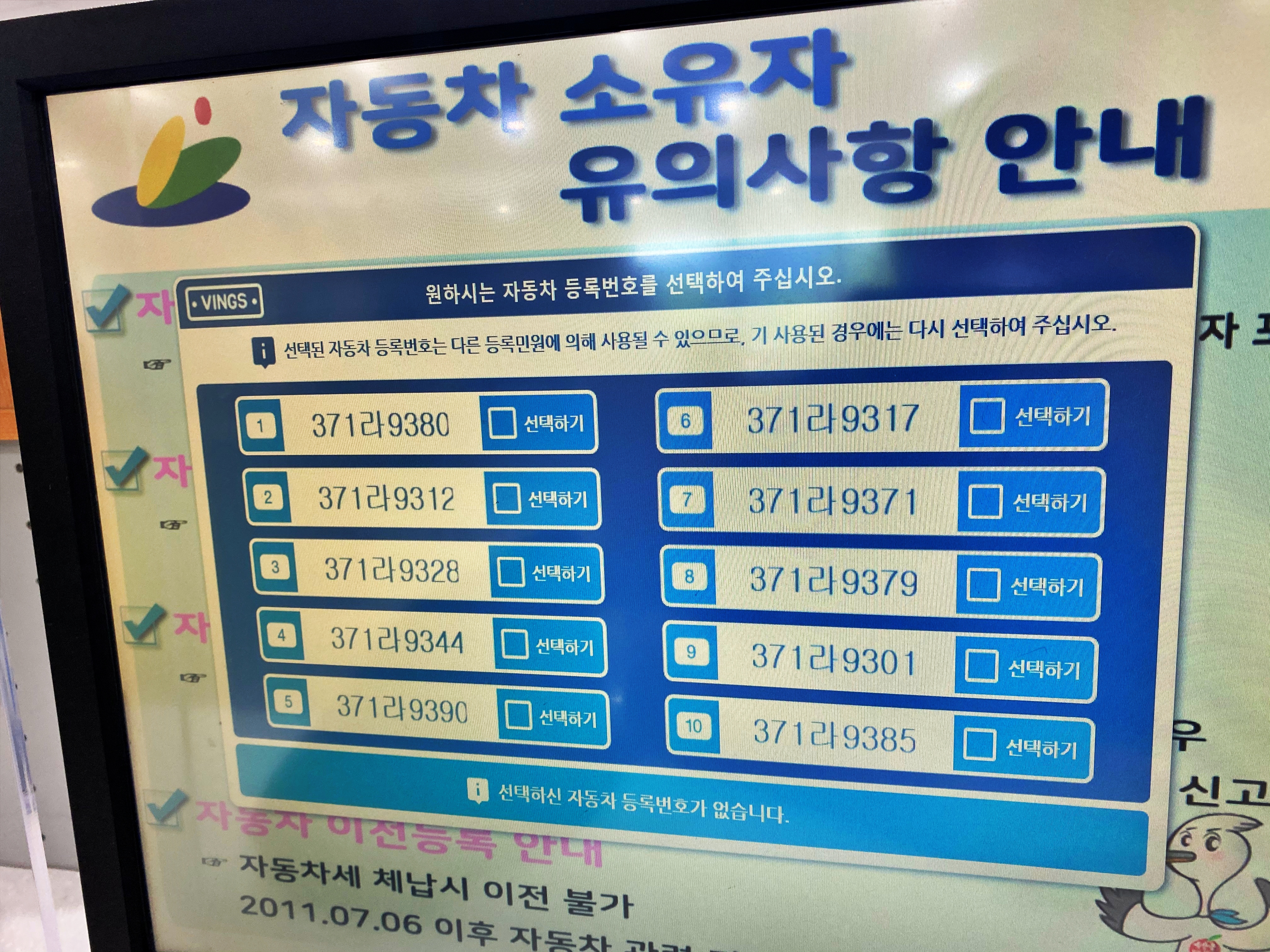 그냥 지나갔었는데 371라9371 찍을걸 그랬나 싶은 생각도 드네요. 시간적 여유가 있었더라면 뭐 주변 관청을 돌아다니거나 필름번호판에 7750 이후 대역이 풀릴 때 다시 오겠습니다만 시간적 여유는 그리 많지 않습니다. 답이 없는 번호에 절망하니, 특별히 천공으로 한번 더 돌려주겠다고 합니다.