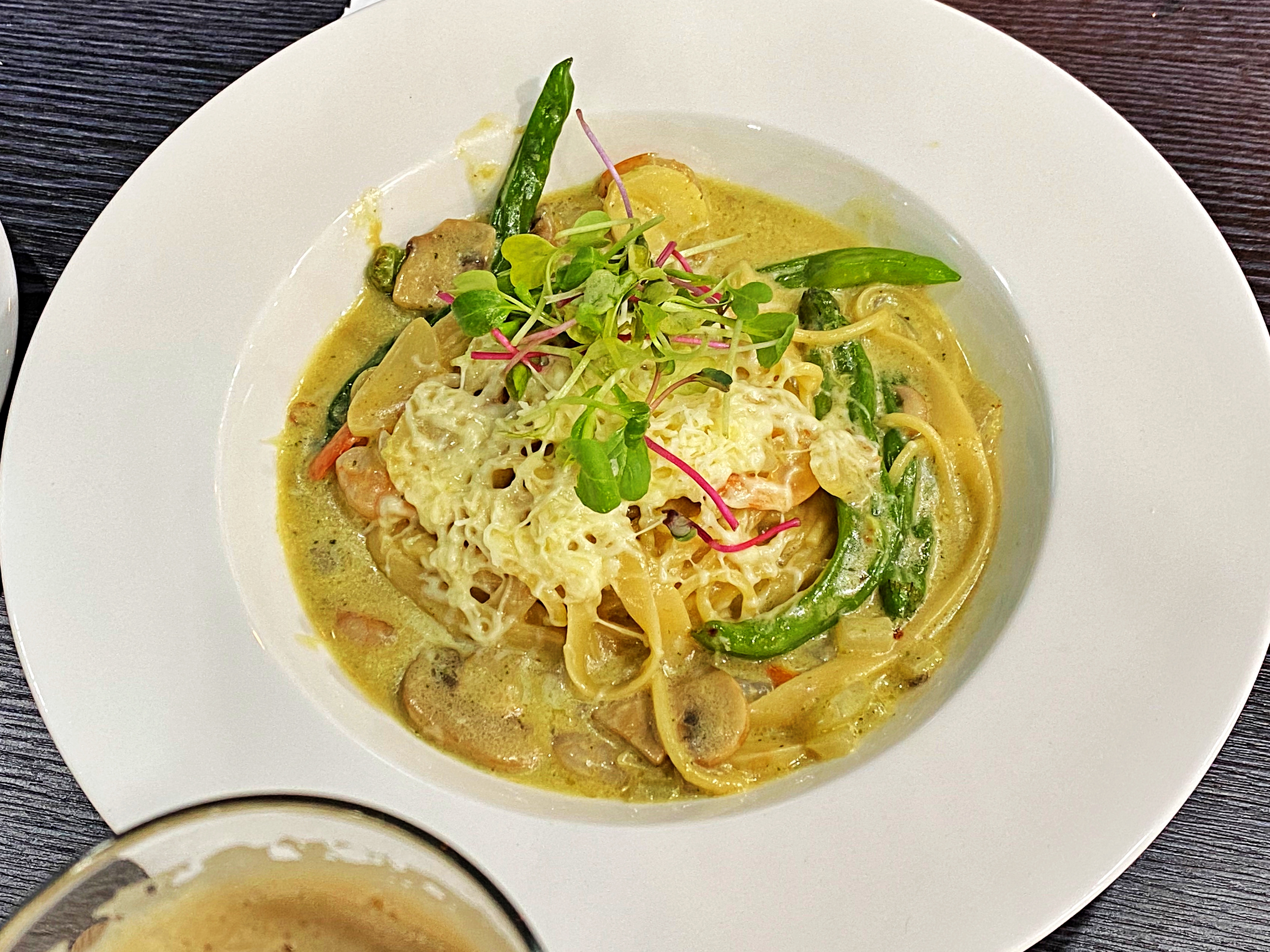 크림 파스타에 순성에서 자란 꽈리고추를 접목시켰습니다.