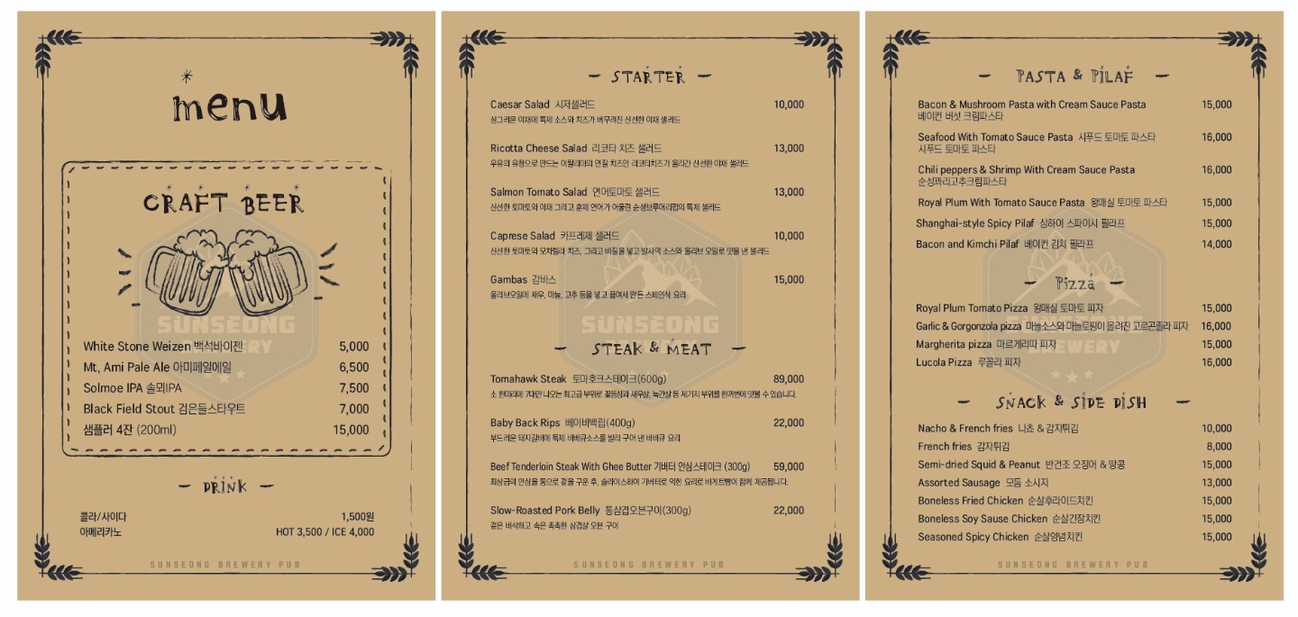 순성브루어리 펍은 대략 이런 느낌입니다.