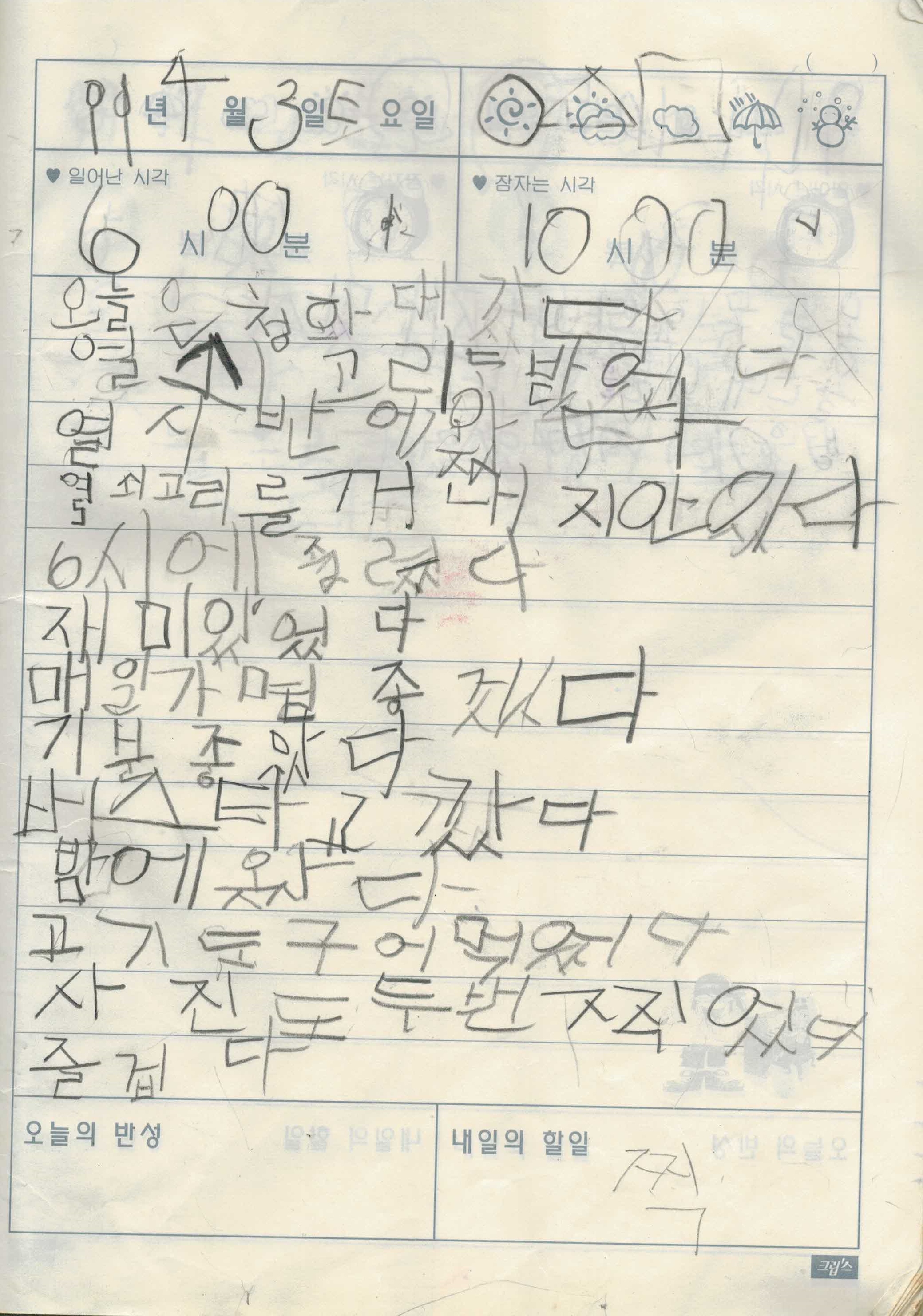 오랜만에 초딩일기로 찾아뵙습니다. 정확히 얘기하자면 초등학생 시절 일기가 아닌 미취학아동 시절 일기입니다만, 이전에도 초등학교 취학 전 일기를 다루긴 했었으니 종종 올려보도록 하겠습니다.