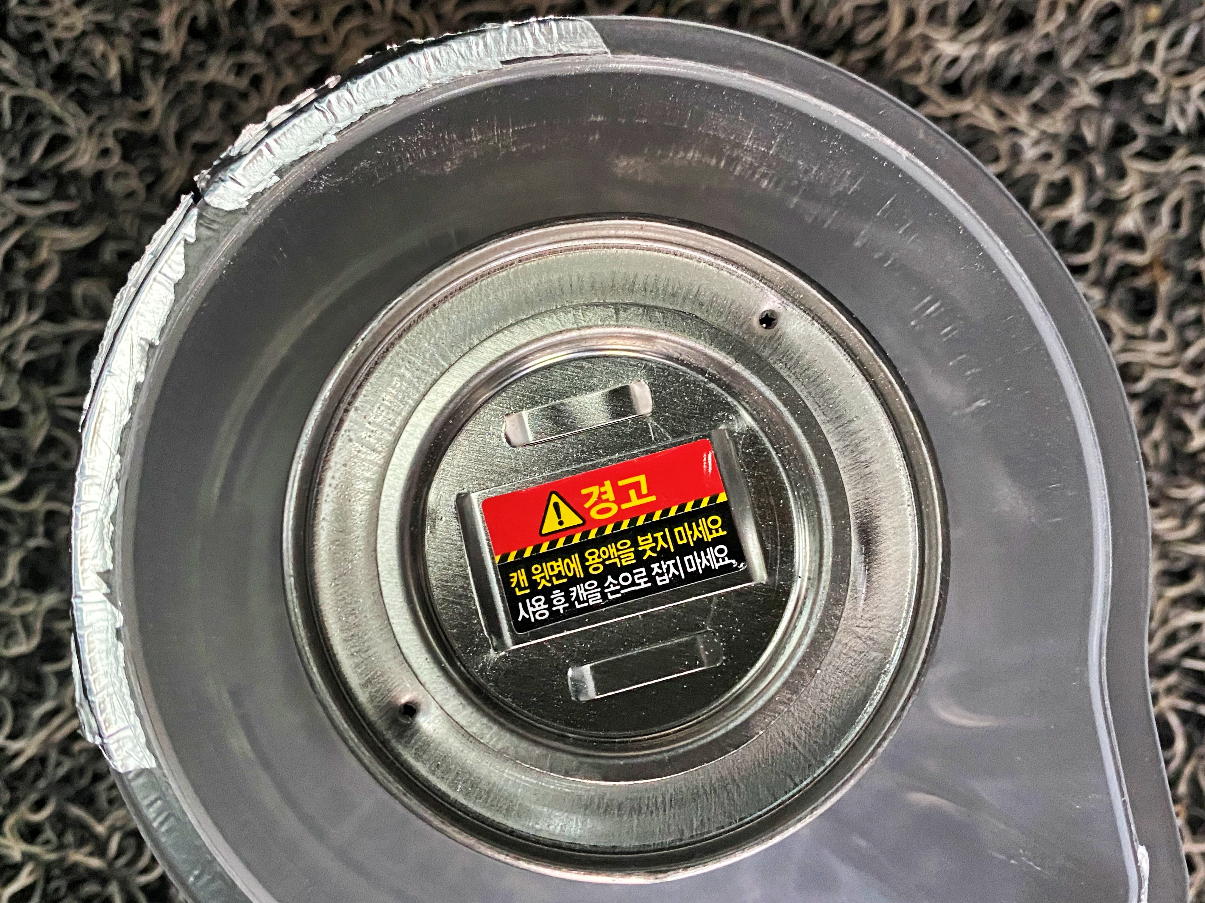 캔 윗면에 용액을 붓지 말고, 사용 후 캔을 손으로 잡지 말아달라 하네요.