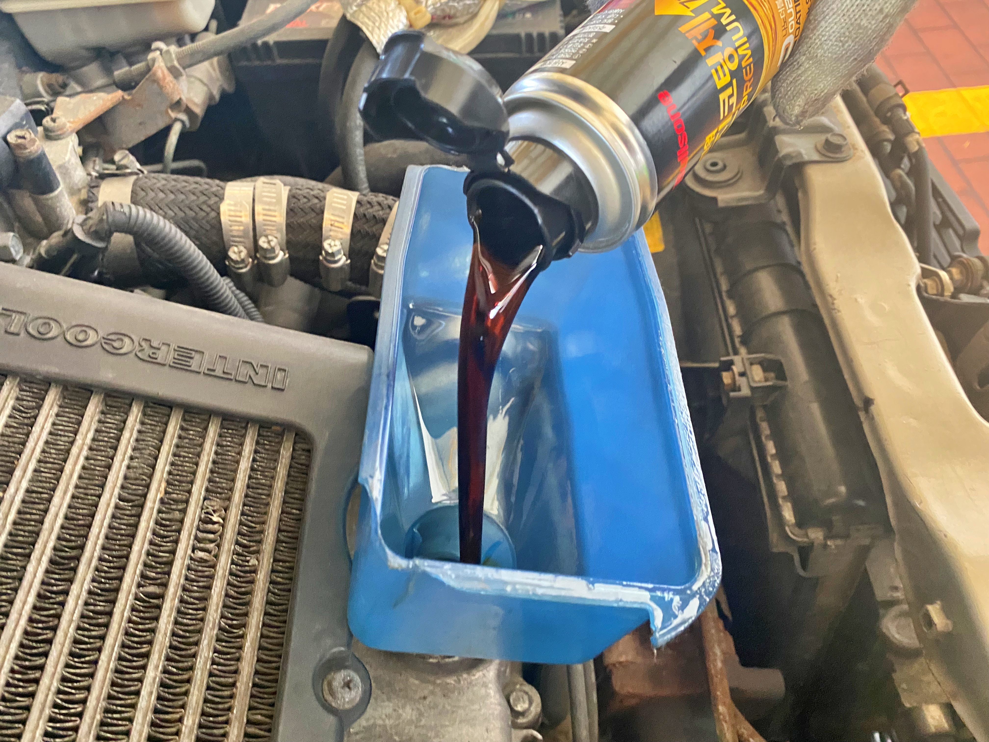 스팅어 3.3, G70 3.3과 같은 고성능 차량에 순정으로 적용되는 오일입니다만, 무려 20년 전 출시된 터보 경차에 들어가게 됩니다. 점도는 0W30. 애초에 따로 준비해 간 오일도 없었고, 현대기아 순정 오일이긴 해도 비스토에는 매우 과분한 성분입니다.