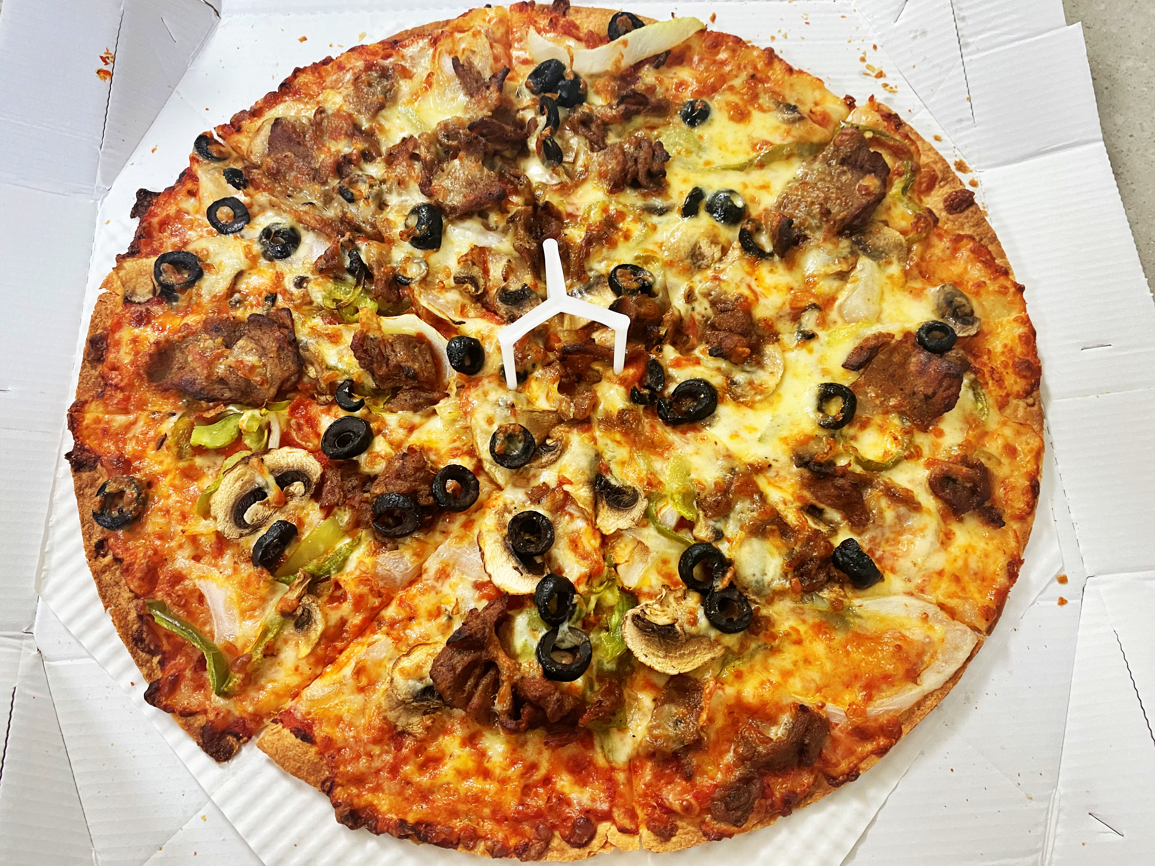 과연 콩고기가 들어간 피자는 어떤 느낌일지 큰 기대를 가지고 피자 상자를 열어봅니다.