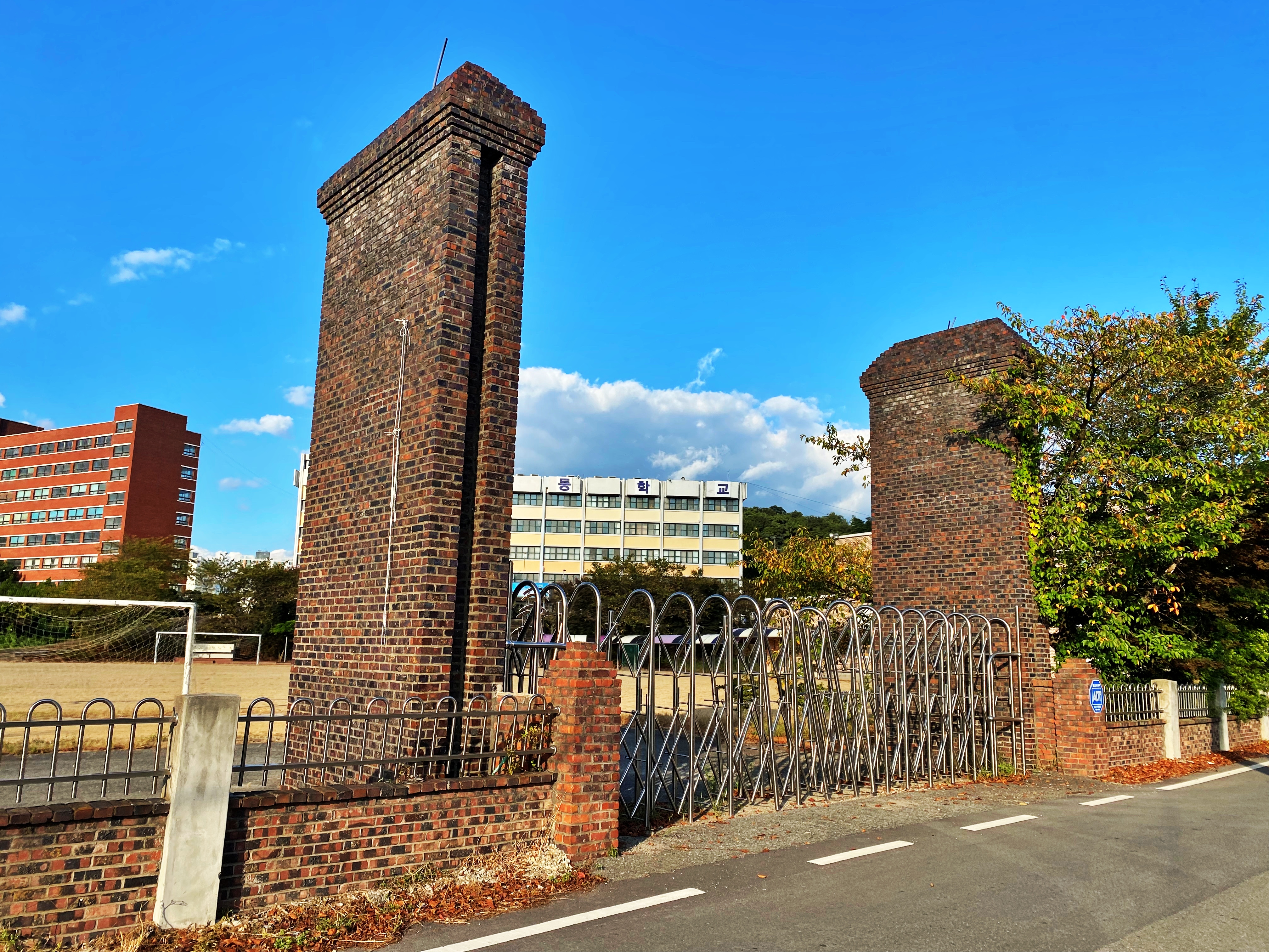 적벽돌로 마감된 대학 건물 두동은 사실상 방치중이지만, 근래들어 이 고등학교에 야구부가 창단되어 건물 한동의 1층과 대학의 운동장은 이 학교 야구부가 사용하고 있다고 합니다. 약 20년만에 건물이 활용되고 있다는 반가운 소식과 함께 찾아갔습니다만, 학교는 적막감만 감돌고 있었습니다.