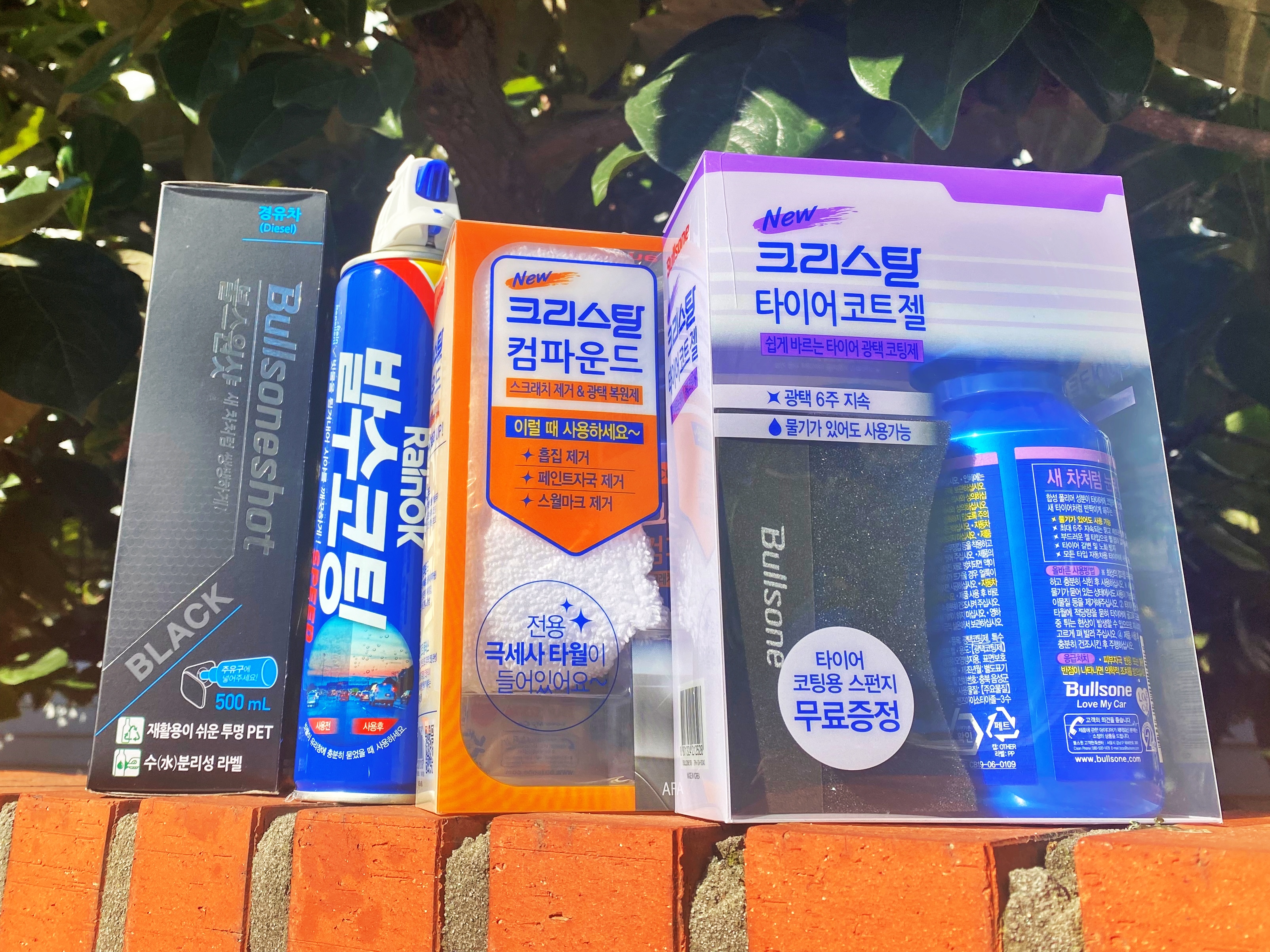 경유용 불스원샷 블랙과 RainOK 발수코팅 스프레이.