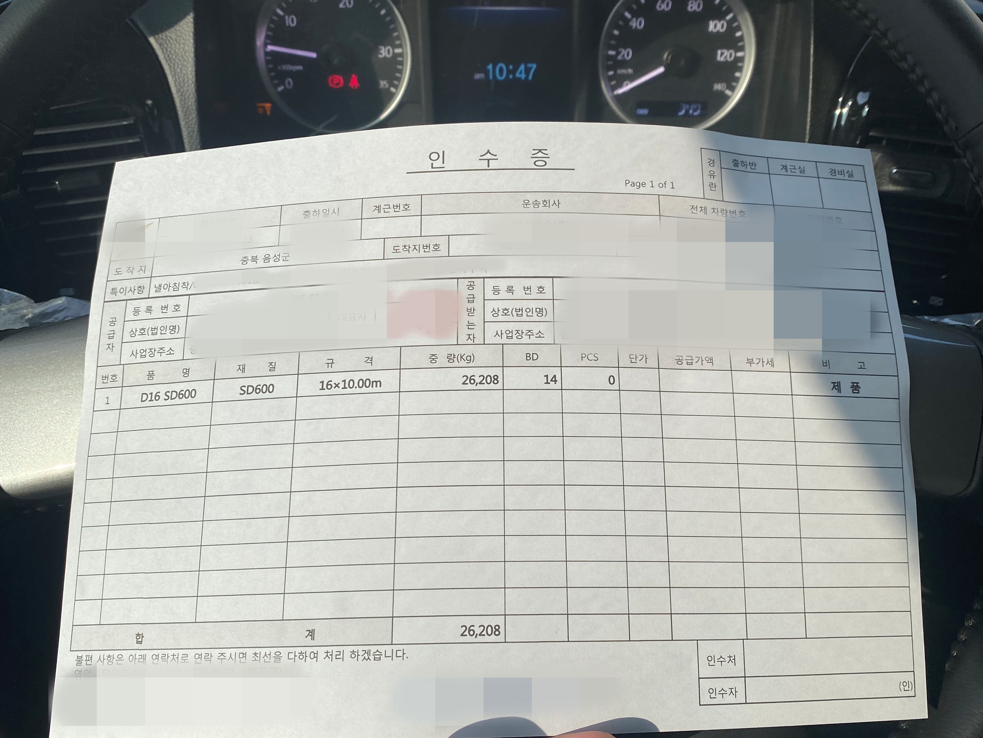 호이스트를 고친다며 약 30분이 지났습니다. 이후 무사히 하차작업을 마쳤습니다. 하차를 마친 뒤 인수증과 기타 부속서류를 사무실에 제출하고 인수증은 싸인을 받아 가져옵니다. 그렇게 빈차로 다시 돌아오면 일과 하나가 끝났다고 보면 됩니다.