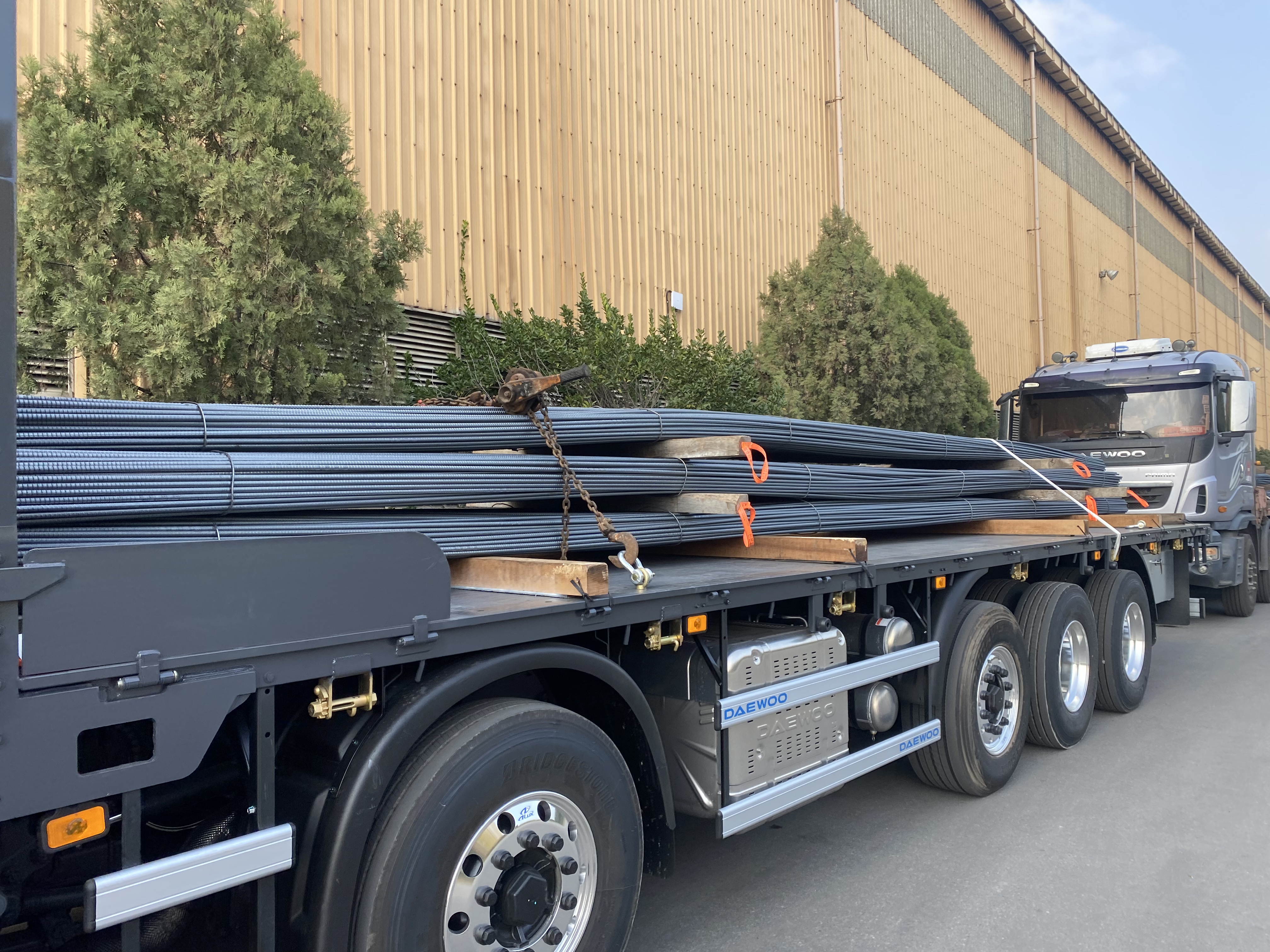 상차 이후 철근이 떨어지거나 밀리지 않게 하기 위해 고정하는 작업을 진행합니다.