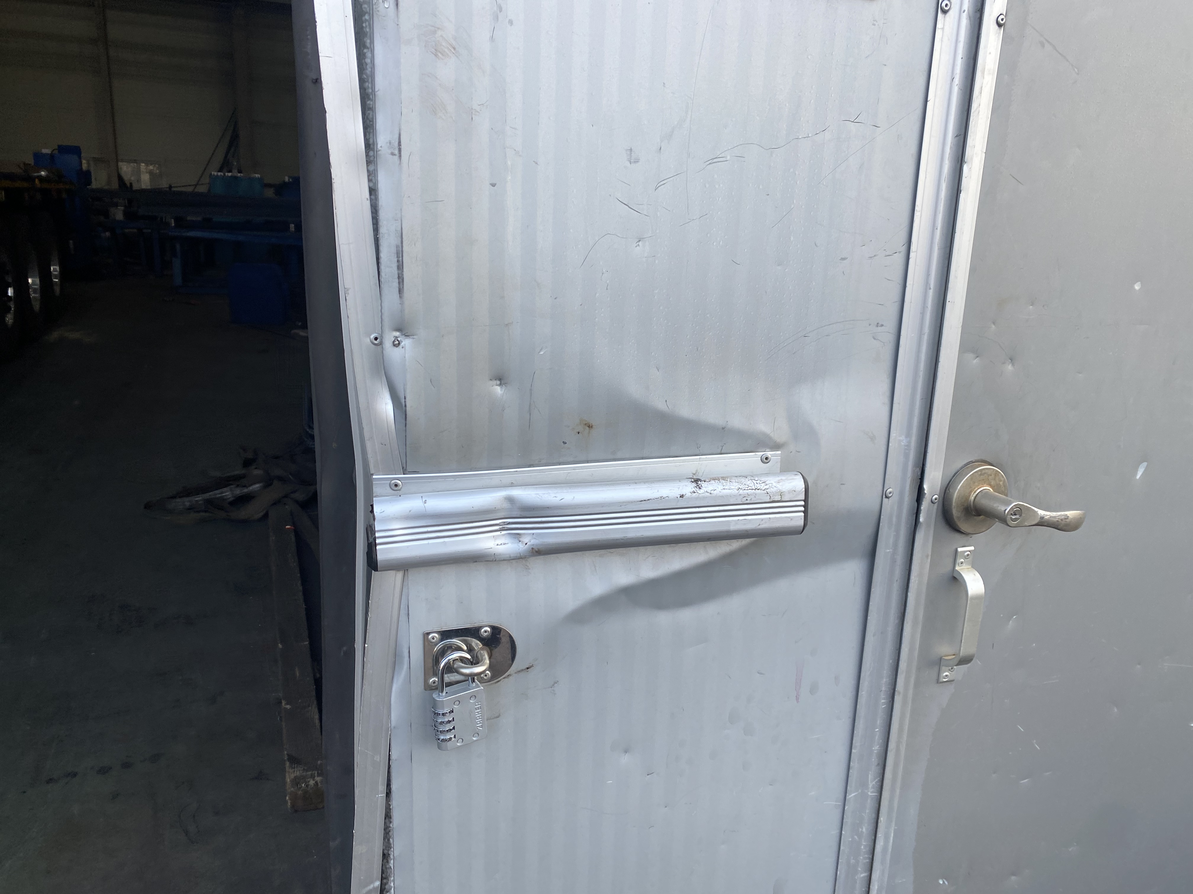 원래 누가 망가뜨려놨던 판넬 출입문의 후렉싱하고 손잡이가 망가졌다고 하네요. 문 전체를 교환하면 견적은 200~250정도. 원래 망가져있던 문이라 그냥 보기 좋을 수준으로 만드는 조건으로 견적 40만원에 처리했습니다.