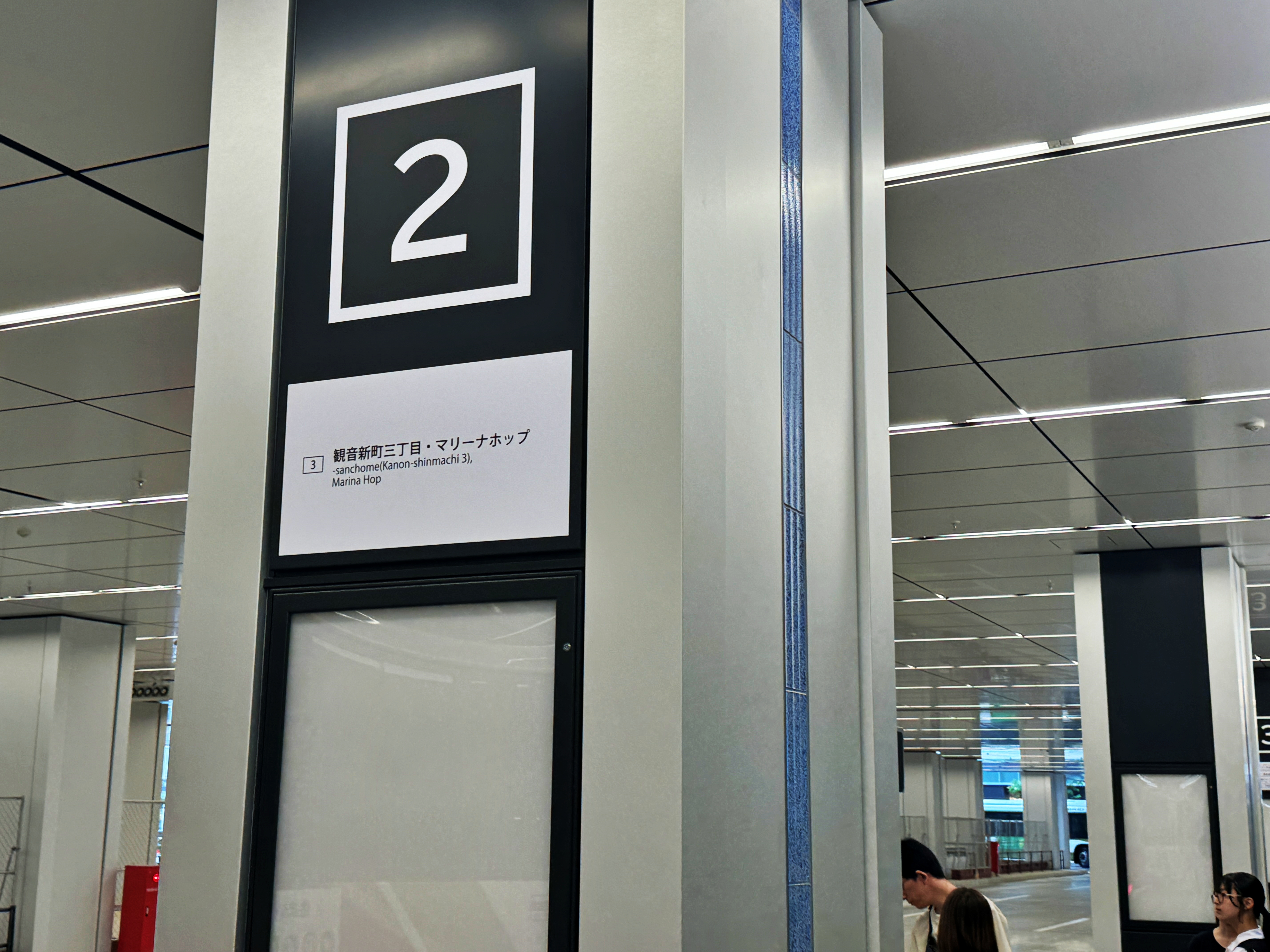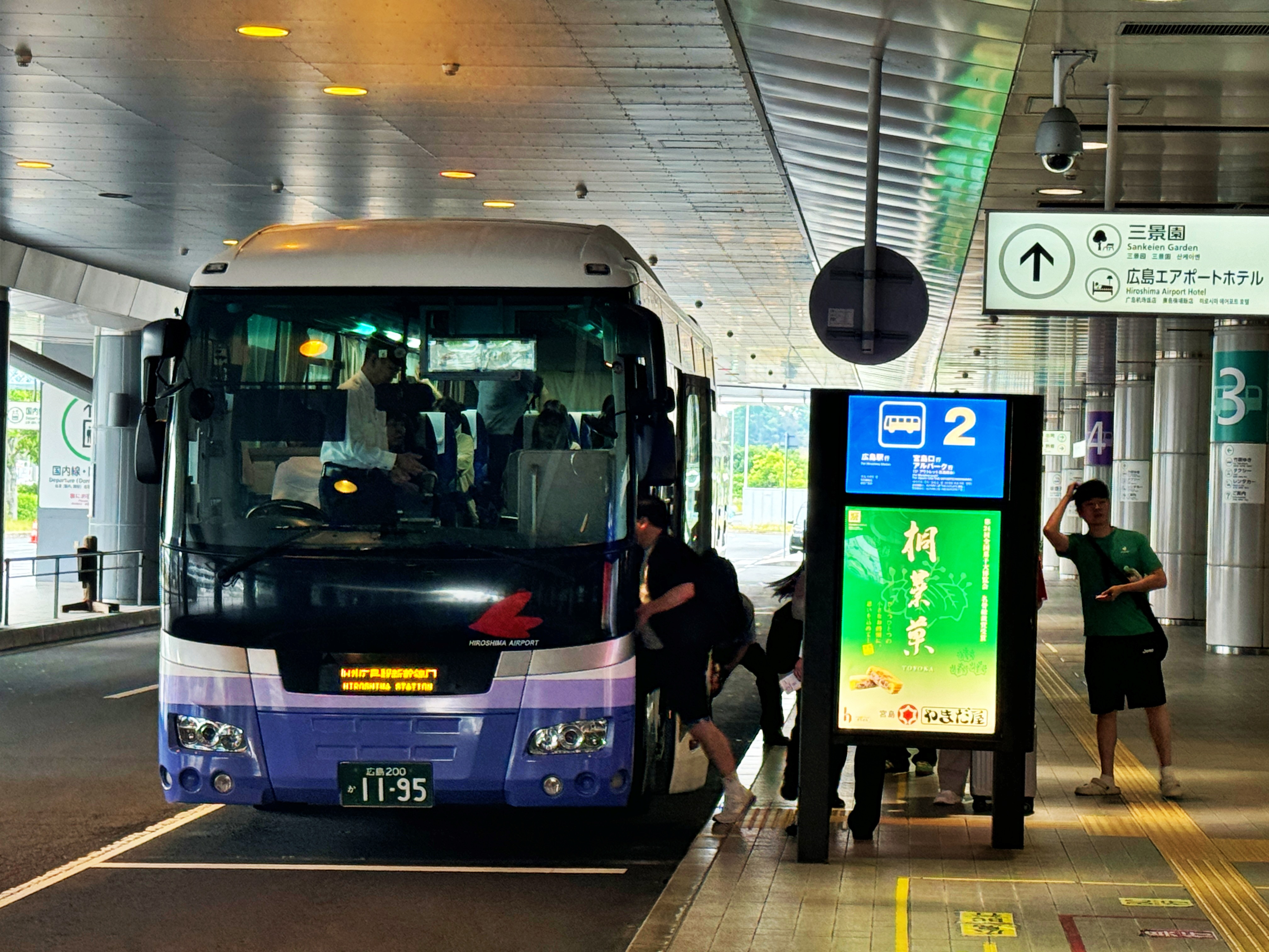 2번 플랫폼에서는 히로시마역으로 가는 버스가 아직 승객을 태우고 있었습니다.