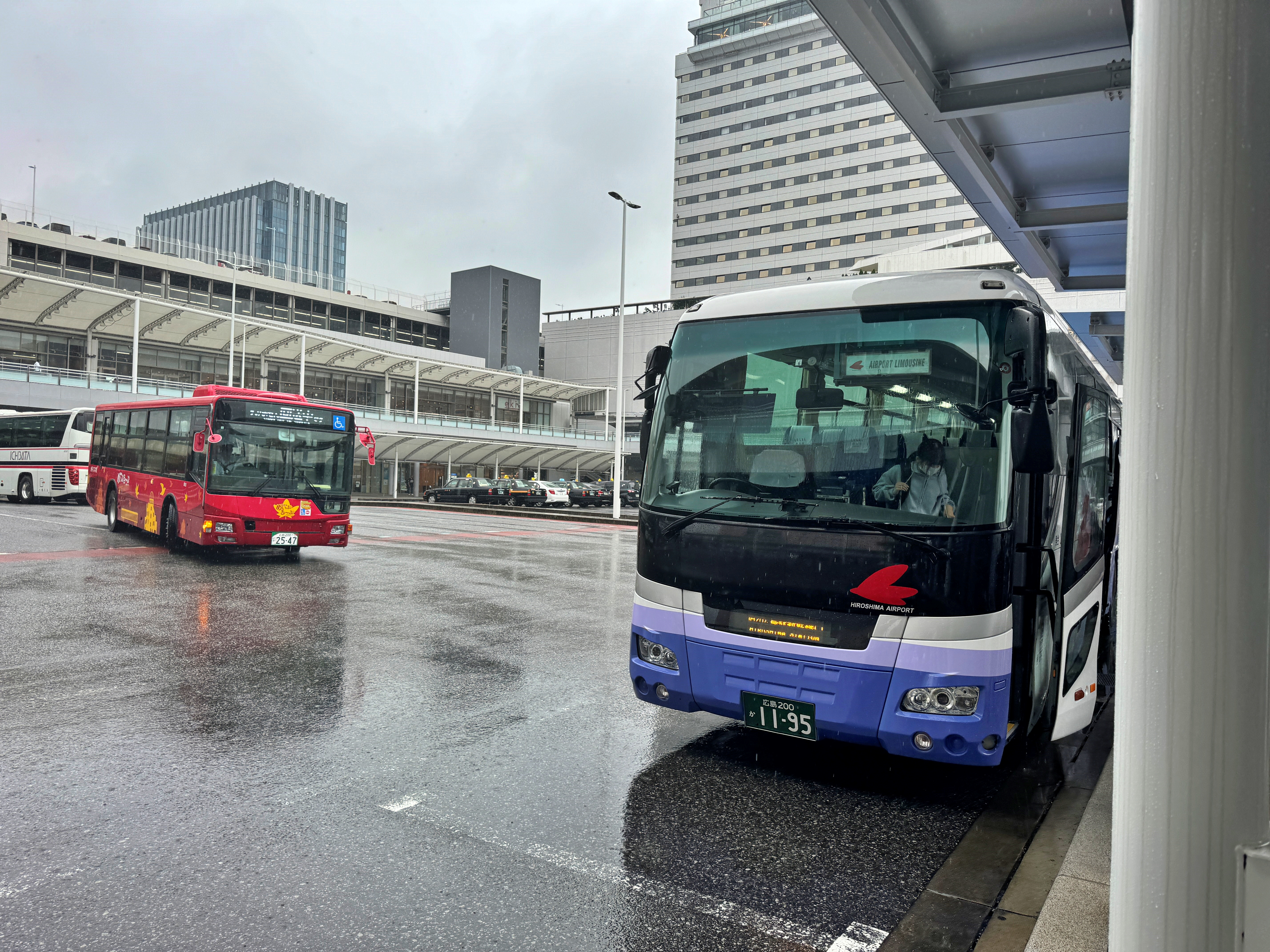 히로시마역 버스센터에 도착하여 하차합니다.