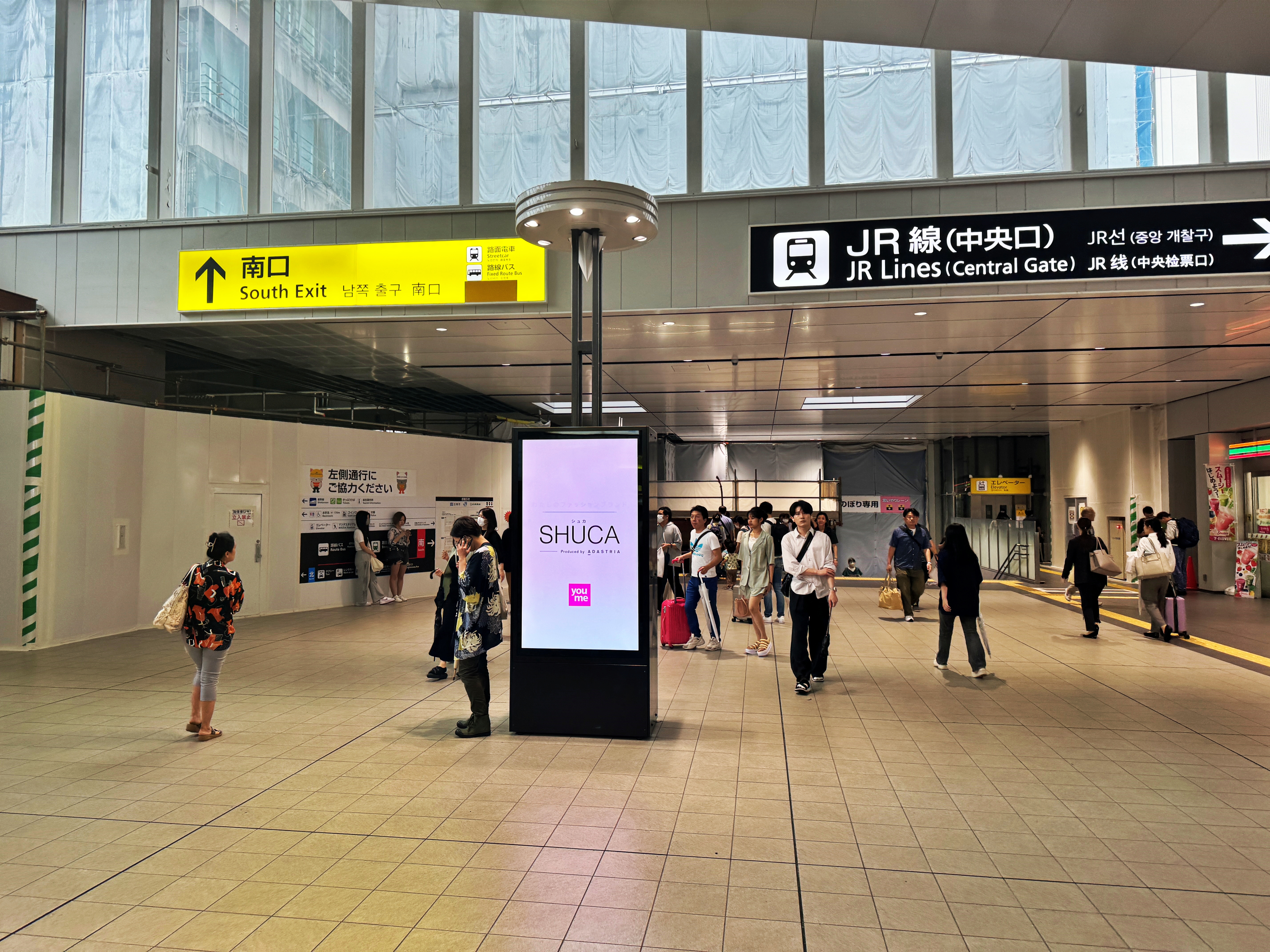 이 통로를 관통하여 남쪽으로 이동 할 수 있습니다. 여타 다른 도시의 중심 역들처럼 다양한 상업시설이 함께 소재해 있습니다. 이 곳 역시 백화점을 비롯한 쇼핑센터가 붙어있었습니다. 요 앞에 빨간 조끼를 입은 아저씨의 옷에 인포메이션이 적혀있더군요. 정 길을 모르겠다면 빨간 조끼를 입고 계신 분들께 도움을 청해도 되겠습니다.