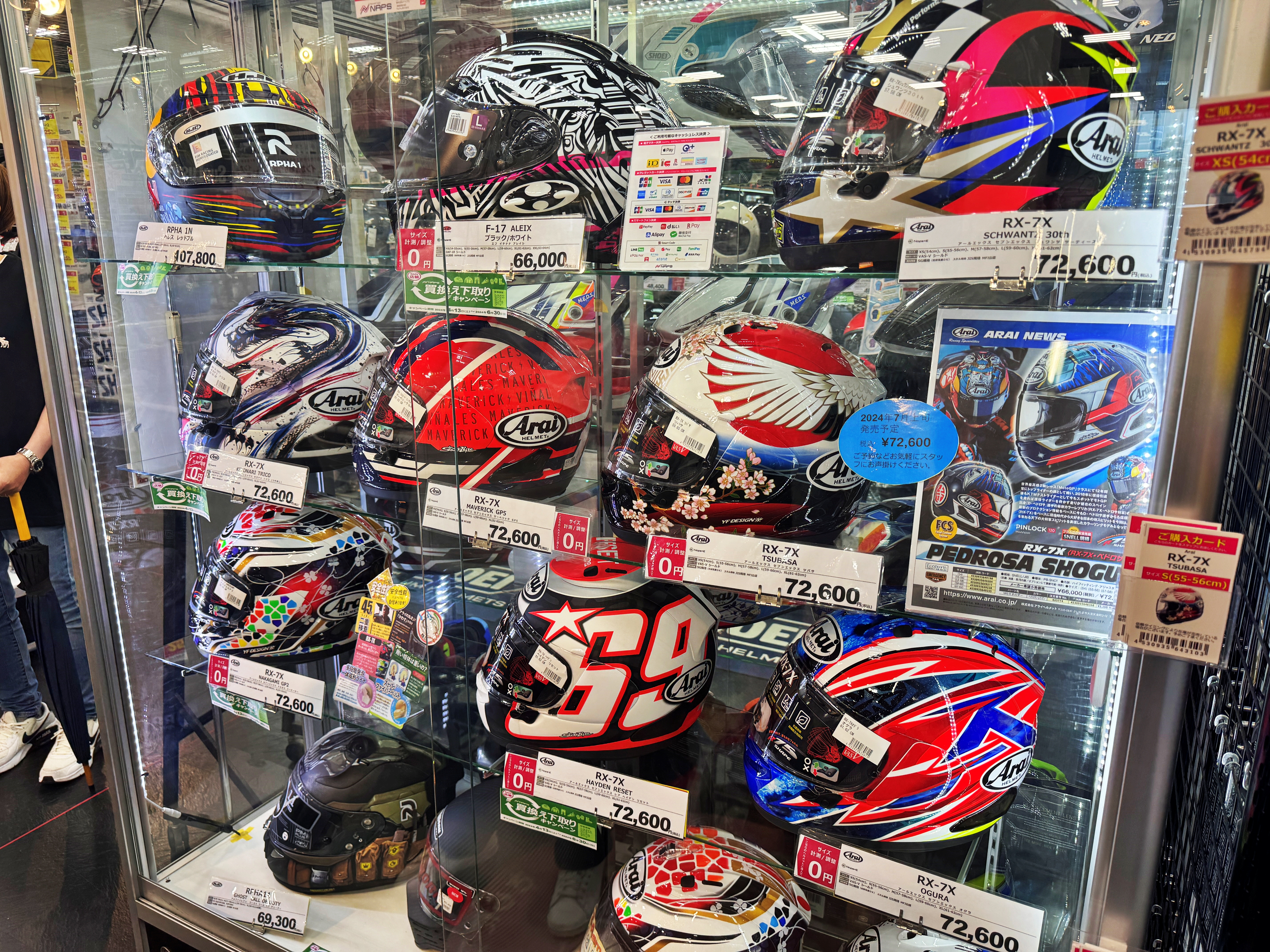 72,600엔. 한국에서도 구할 수 있는 물건이 있고, 그렇지 않은 물건들도 있다고 합니다. 그냥 화려한 헬멧들 보는 재미만으로도 좋습니다.