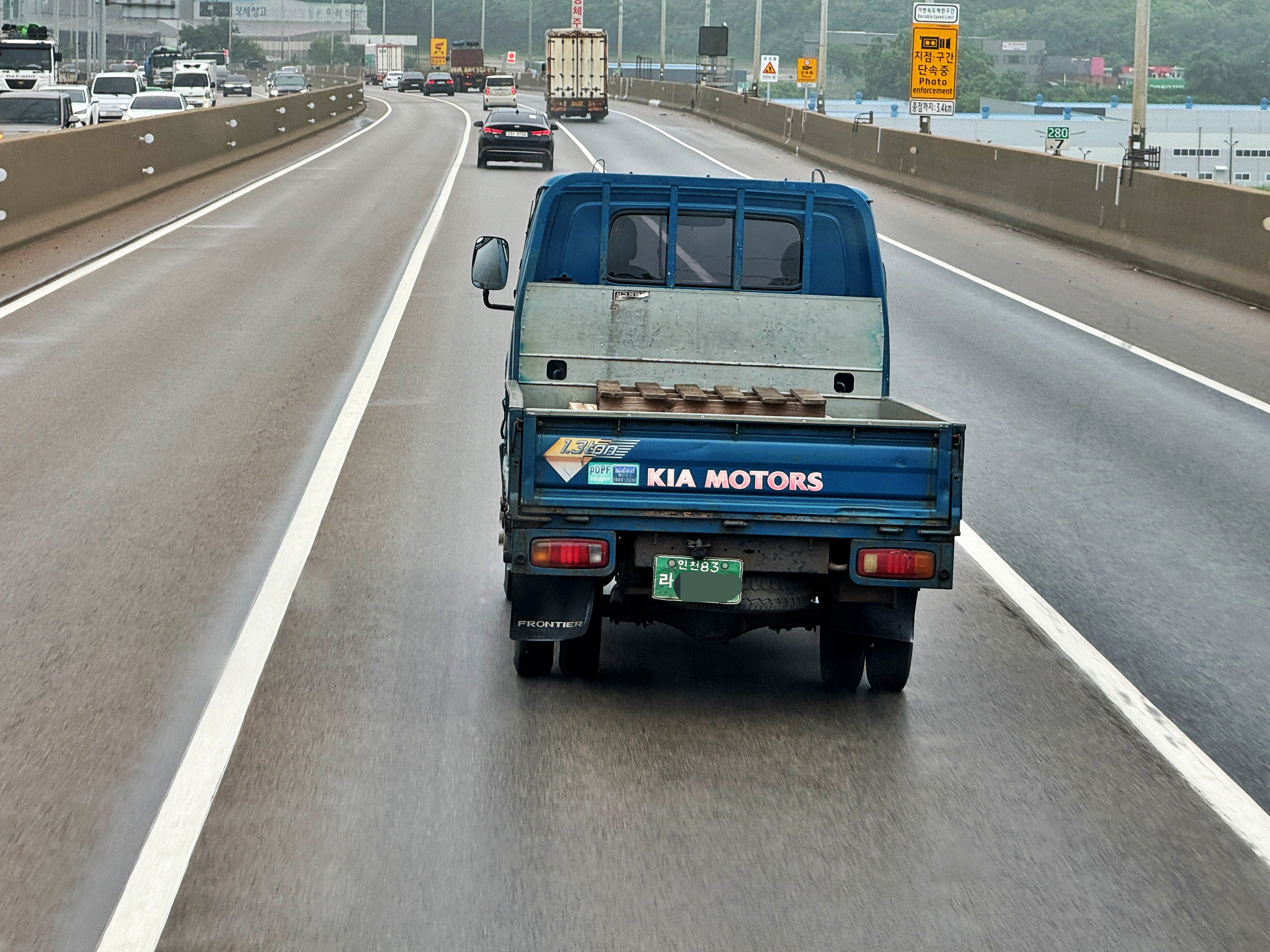구간단속구간이 끝나자 속도를 내서 사라지더군요. 차령 20년이 넘어가며 이젠 프런티어 역시 찾아보기 어려운 트럭이 되었습니다. 환경적폐로 낙인찍혀 조기폐차라 쓰고 적폐청산이라 읽는 행위에 희생당하거나 수출길에 오르며 꽤 많이 사라졌습니다. 물론 타국에서 새로운 차생을 살고 있는 경우가 대부분이겠지요.