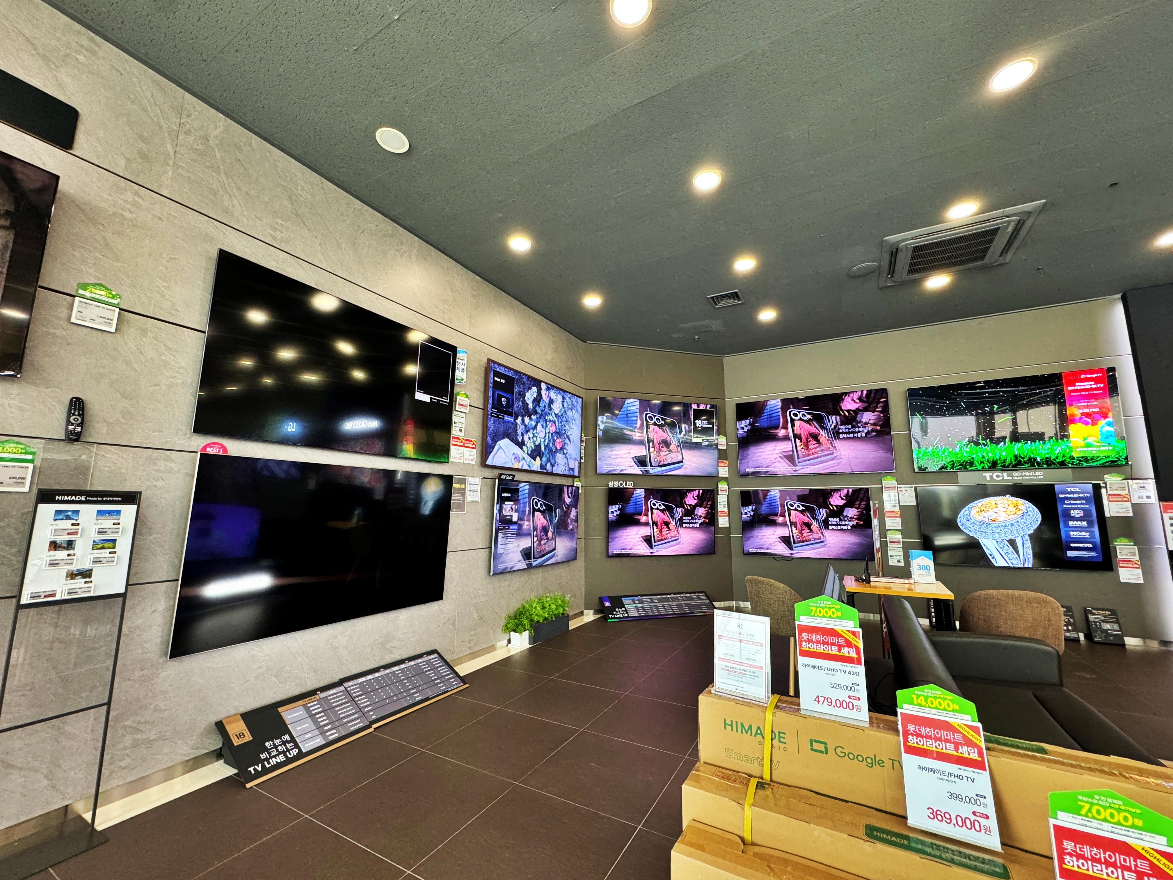 큰 제품은 필요없기에 하이마트의 PB 브랜드인 하이메이드 브랜드로 나오는 250L급 냉장고로 결정한 뒤 TV가 진열된 곳으로 왔습니다. 크기별로 다양한 제품들이 존재하는데 삼성 LG 그리고 중국산인 TLC TV가 주로 진열되어있었습니다. 대우에서 나온 제품은 스탠드형 42인치 하나만 보이더군요.