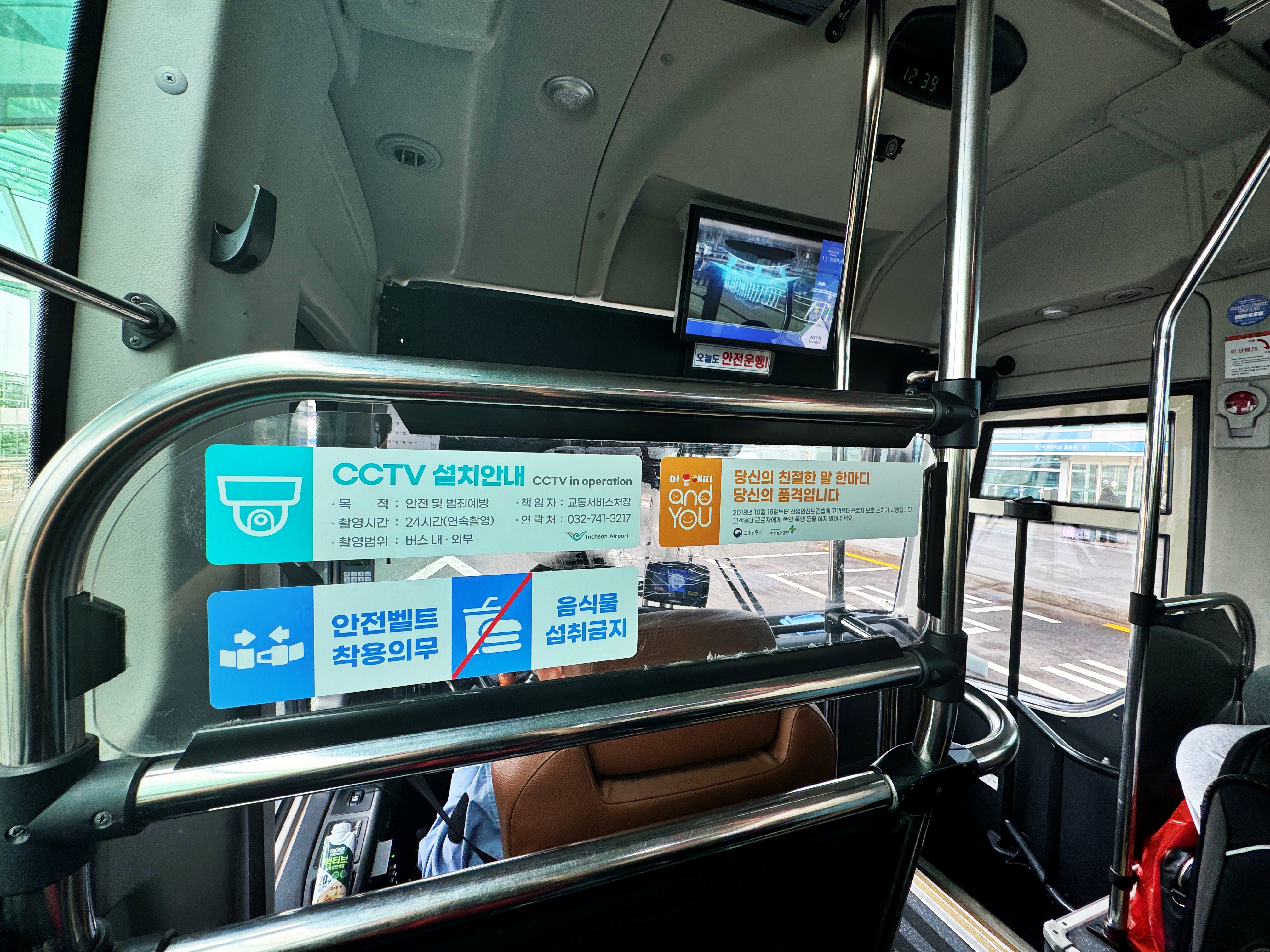 좌석 배열이 특이하네요. 일반적인 버스가 2x2 형태의 좌석 배치를 보이고 우등버스가 2X1 형태의 좌석 배치를 보인다면 공항 셔틀버스는 1x1 형태로 자리가 하나씩 밖에 없습니다. T2에서 T1으로 이동하며 업무지구 정류장에 정차하여 승객을 태워 넘어갑니다. 참고로 과도한 교통흐름을 방해하는 정속주행으로 악성크드라 불리기도 하는 KD 버스들도 추월할 정도의 속도로 달립니다. 잘 달려봐야 60km/h 수준이고 1터미널까지 약 25분 가까운 시간이 소요되었습니다.