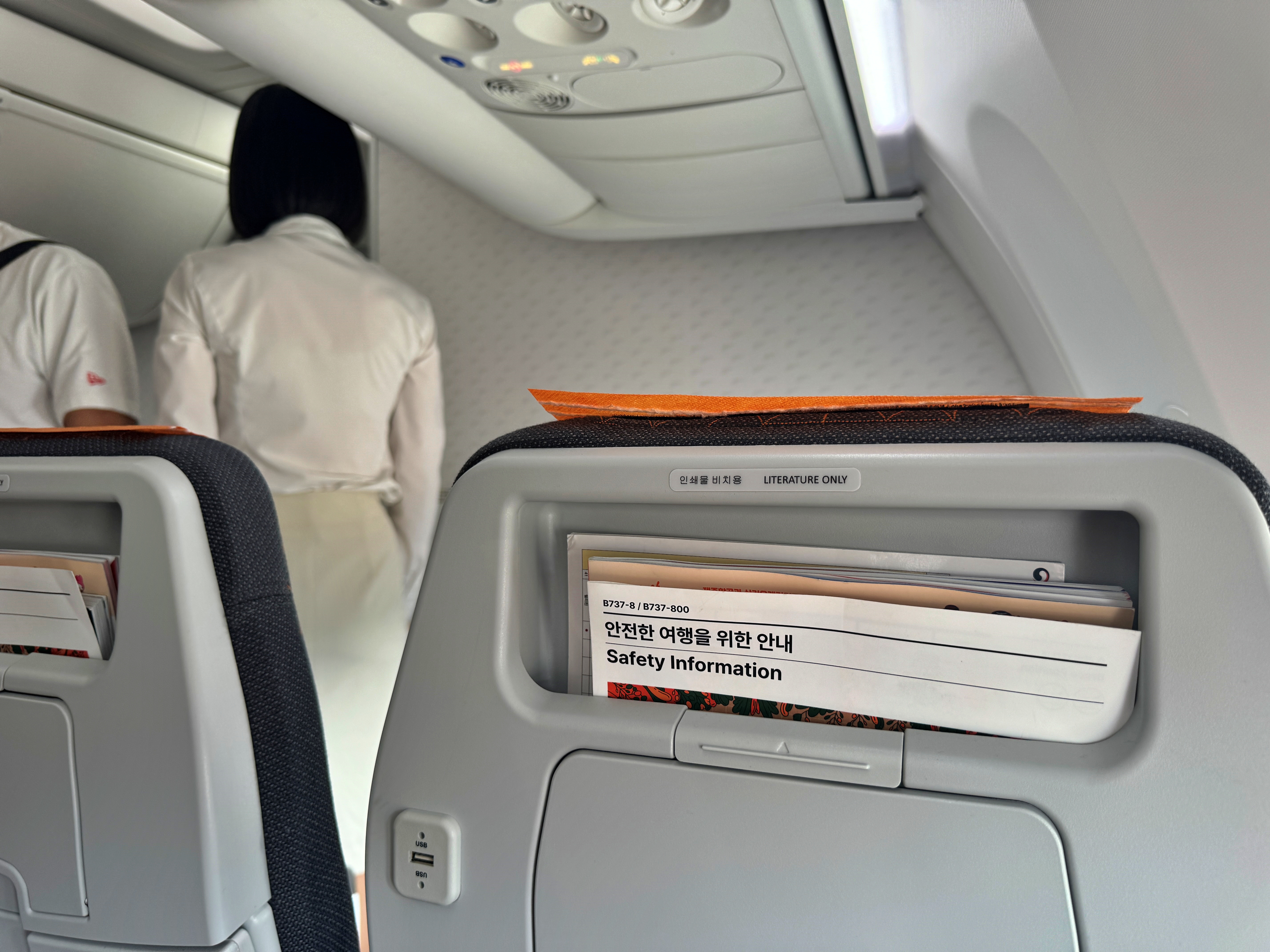 탑승시간에 임박해서 체크인을 진행하면 이점이 바로 이겁니다. 추가금을 줘야 풀리는 애매하게 한좌석씩만 남은 자리들이 풀려있거든요. 두번째 열에 앉아보긴 처음이었습니다. 다만 항로혼잡을 이유로 또 40여분 지연되어 출발하네요. 덥긴 엄청 더웠고 기류불안정으로 조금 흔들리기도 했지만, 40여분이 지연된 뒤 무사히 출발했습니다.