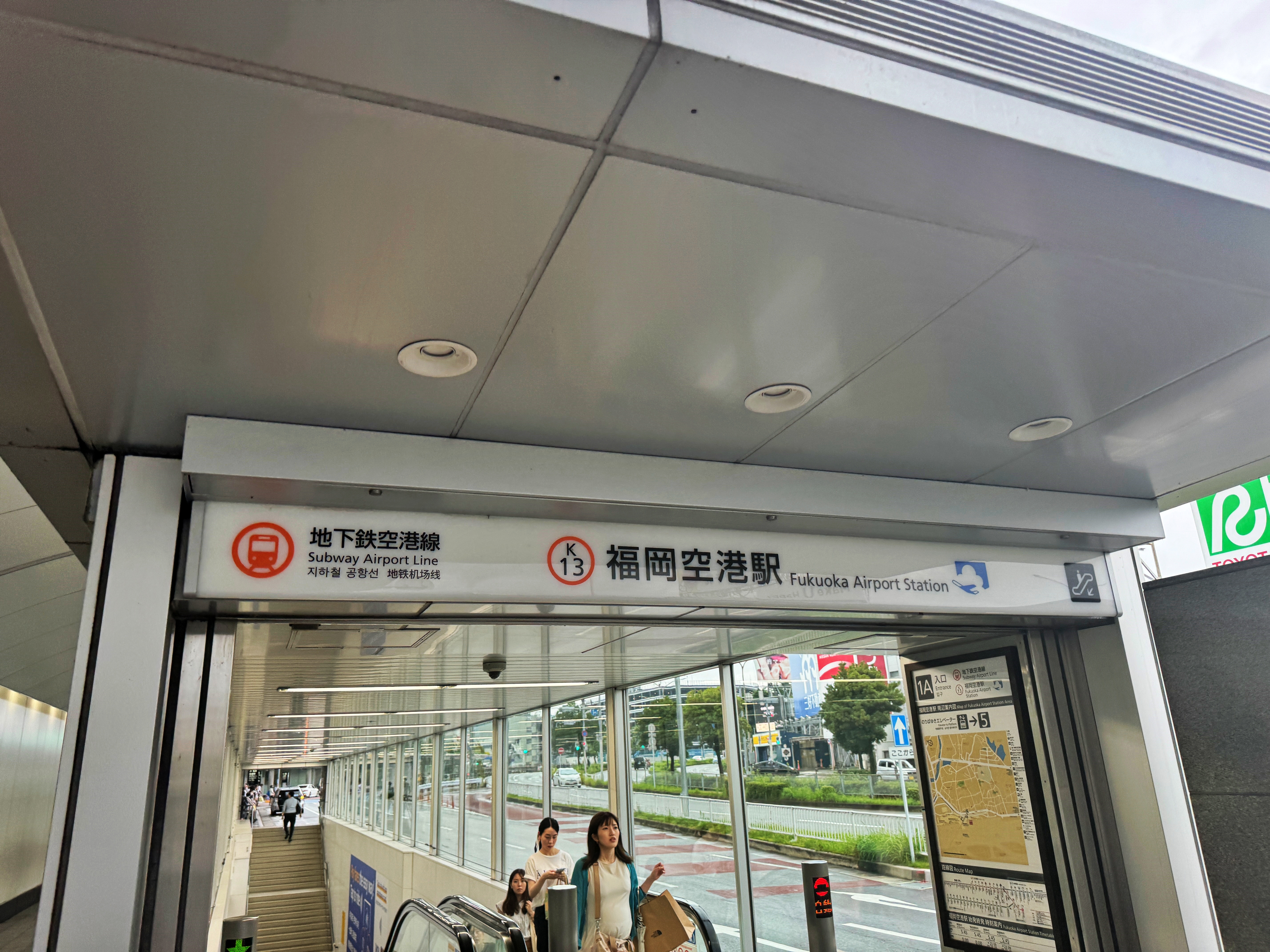 후쿠오카공항 국내선 터미널의 셔틀버스 정류장에 하차면 바로 전철역 출입구가 보입니다.