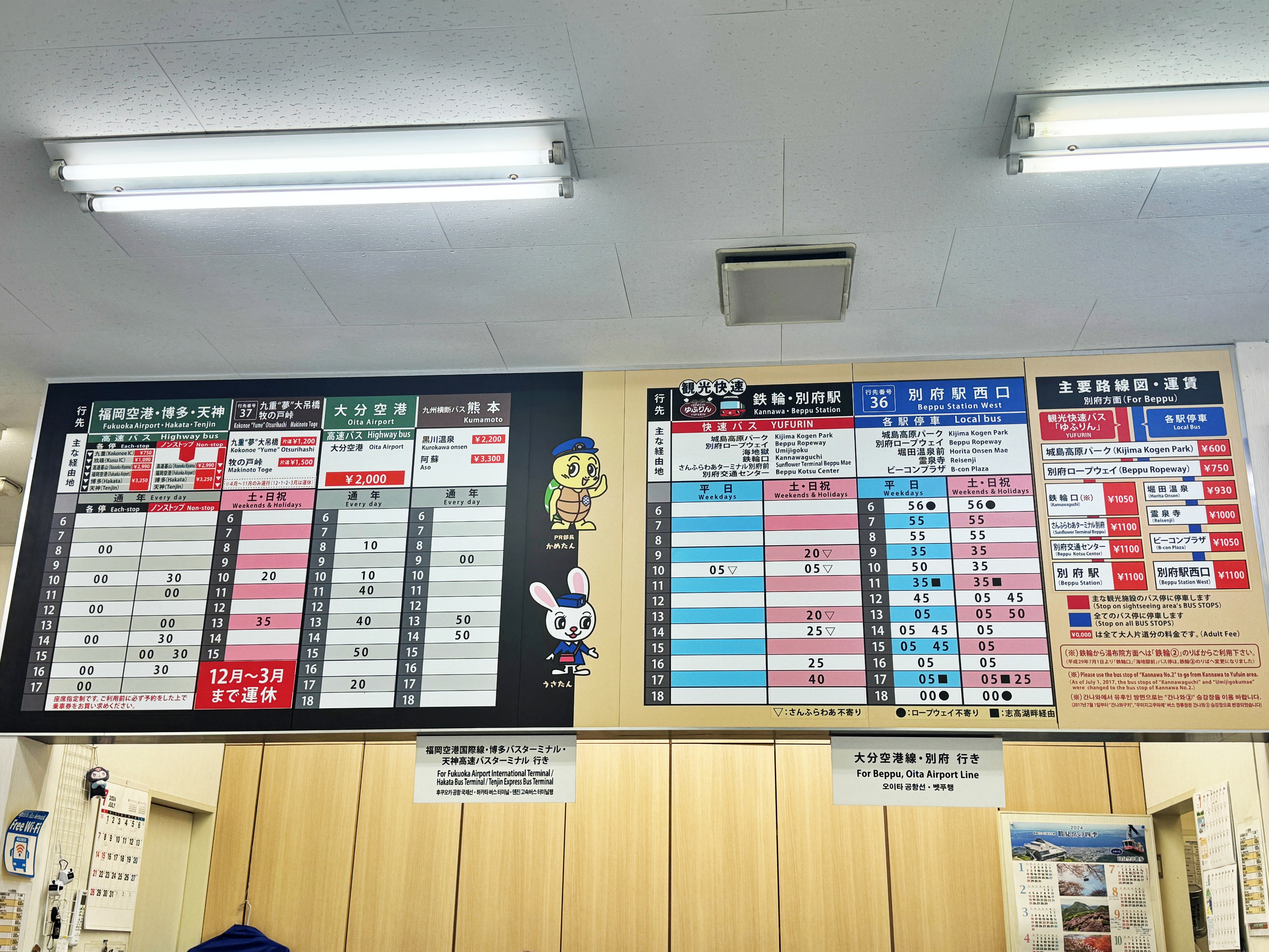 주요 버스 노선은 후쿠오카공항-하카타-텐진 노선과 오이타공항 및 벳푸행이 되겠습니다.
