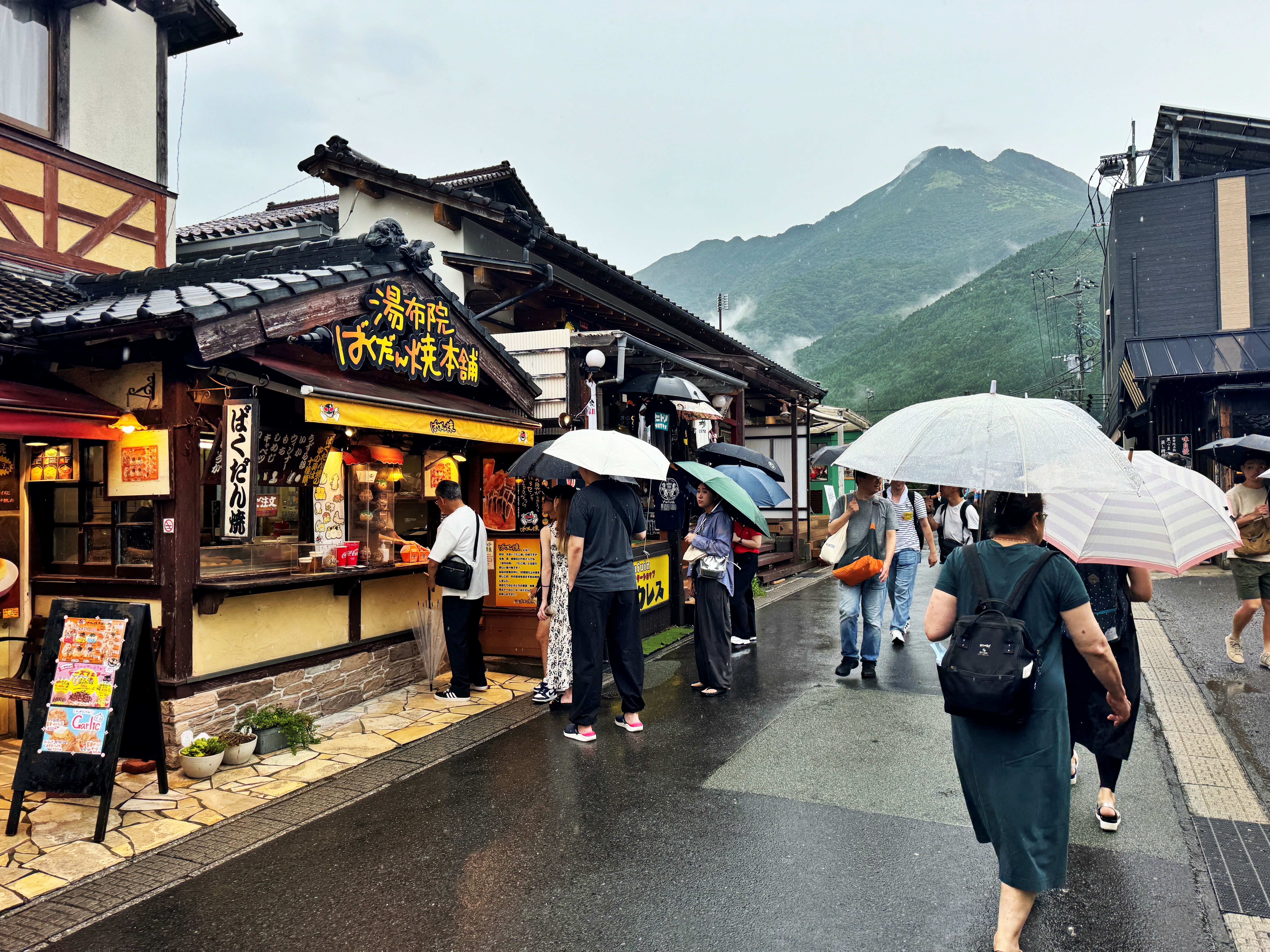 우리가 흔히 생각하는 온천이 있는 관광지 유후인은 여기서 조금 걸어 올라가야 합니다.