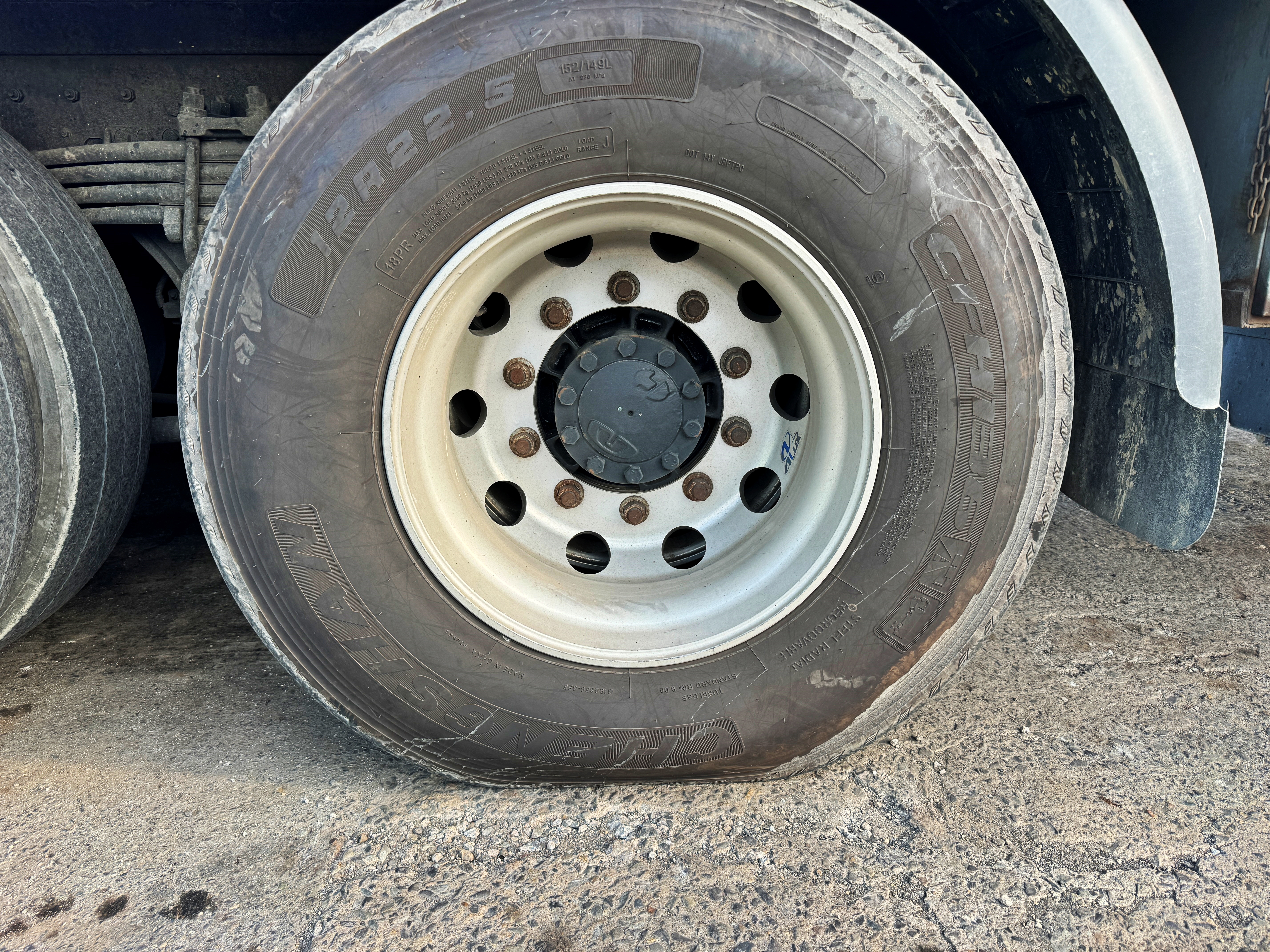 적차된 상태라 그런지 멀쩡한 타이어에 하중이 몰리며 이런 모습을 보여줍니다.