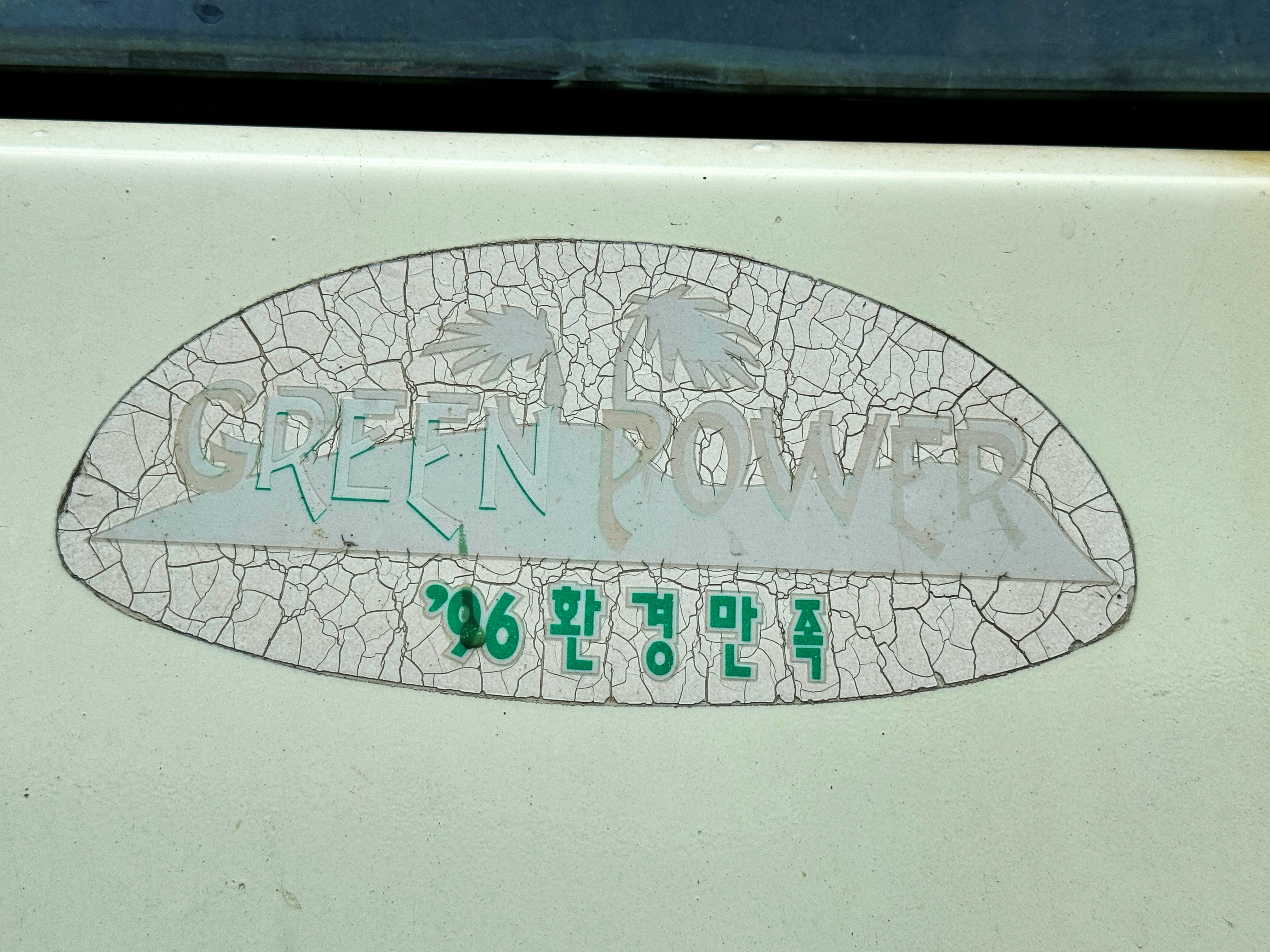 그레이스 포터같은 차량부터 이런 대형차까지 96년 환경기준을 충족했다는 의미에서 이 스티커를 붙여 출고되었는데 지금껏 이 스티커가 붙어있다는 이야기는 도색이나 탑갈이 같은 큰 수리가 없었다는 이야기겠죠. 그럼에도 별다른 관통부식 하나 보이지 않는 상태를 유지하고 있었습니다.
