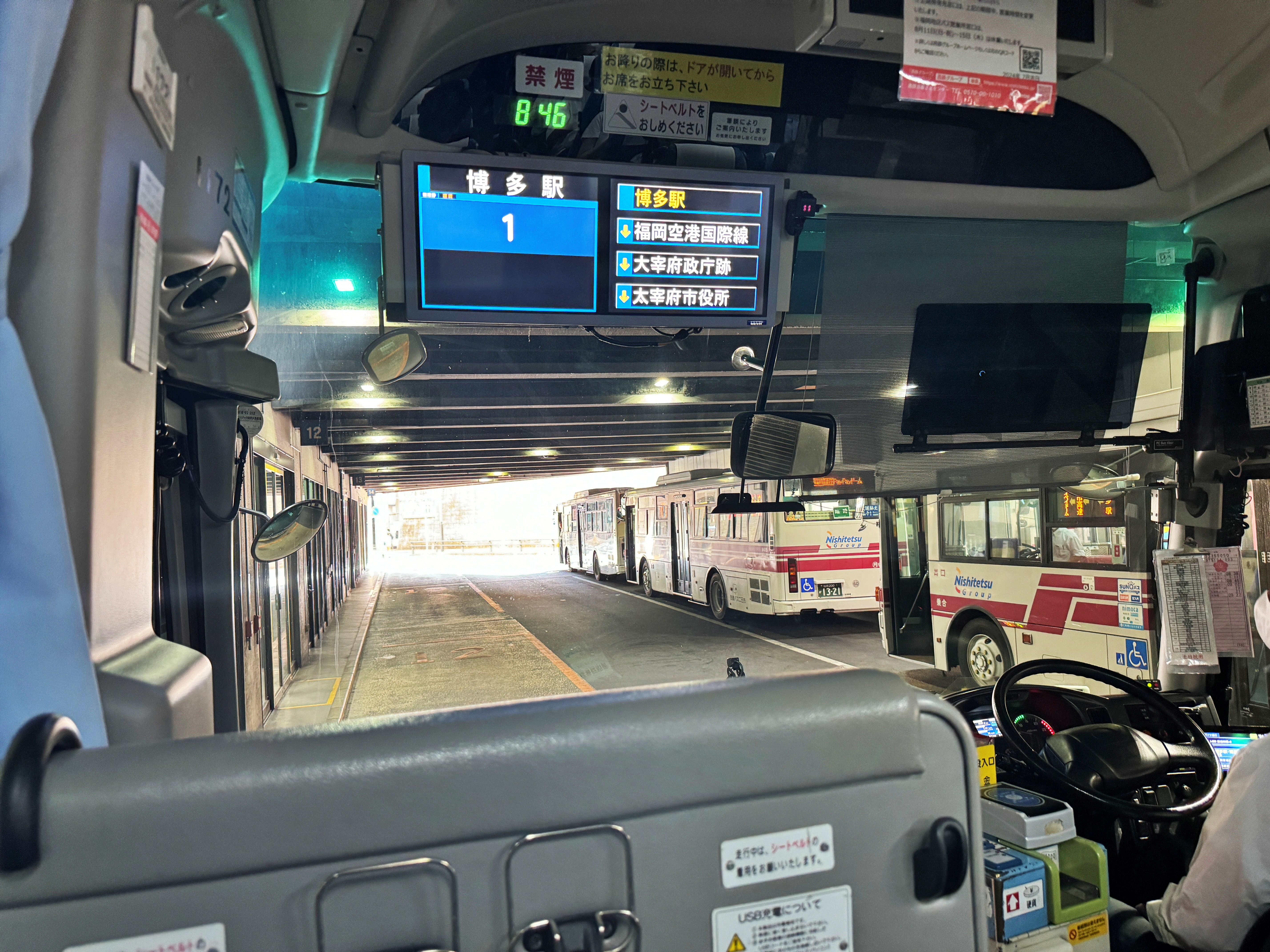 후쿠오카공항 국제선 터미널행 줄과 다자이후행 버스 줄이 따로 나뉘어 있습니다. 물론 다자이후행 버스 역시 후쿠오카공항 국제선 터미널을 경유하여 다자이후로 향합니다만, 공항에서 다자이후로 가는 승객만 태울 뿐이지 구간영업은 하지 않습니다.