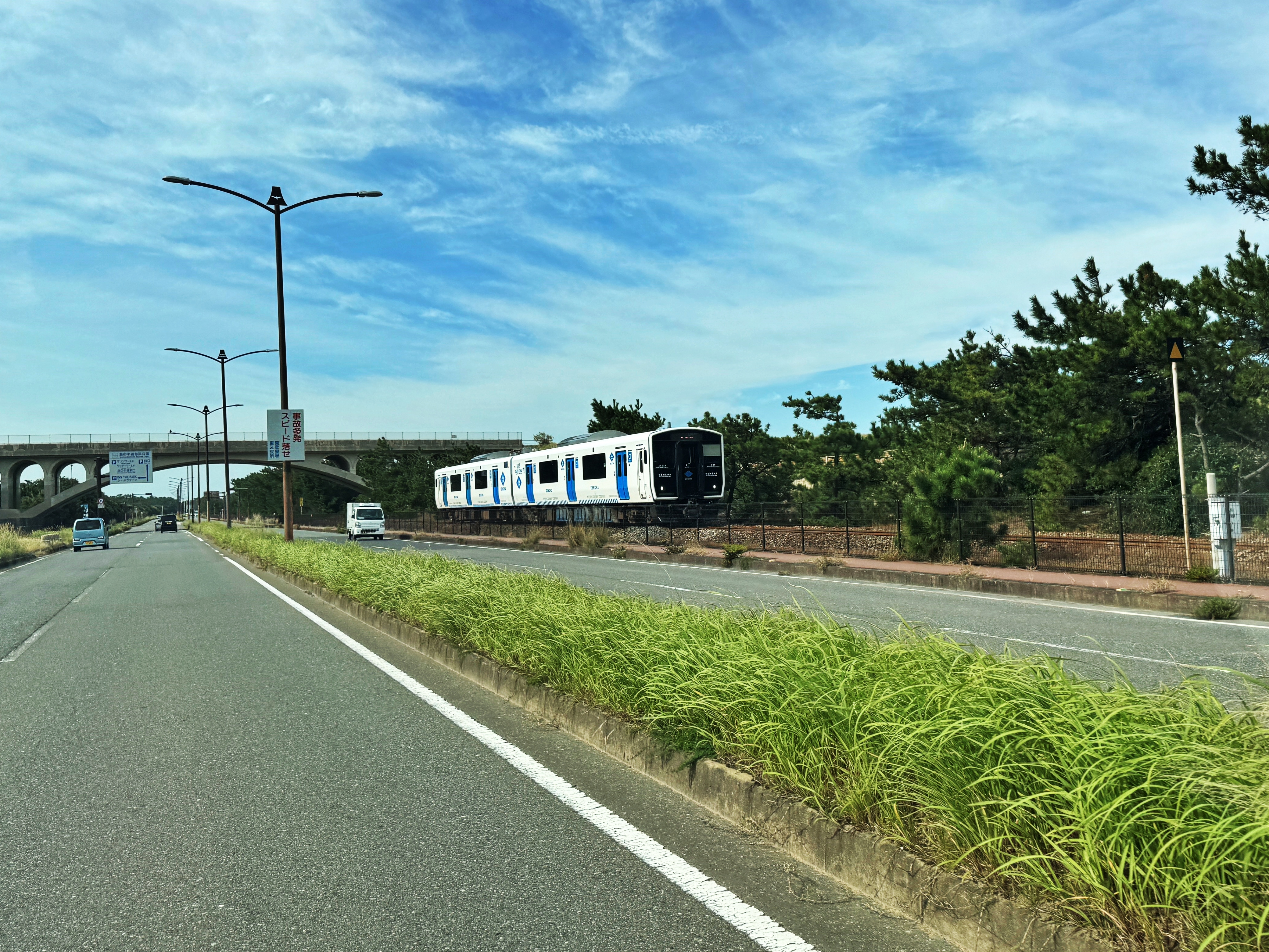 종점 사이토자키역으로 향하는 카시선 열차도 지나갑니다.
