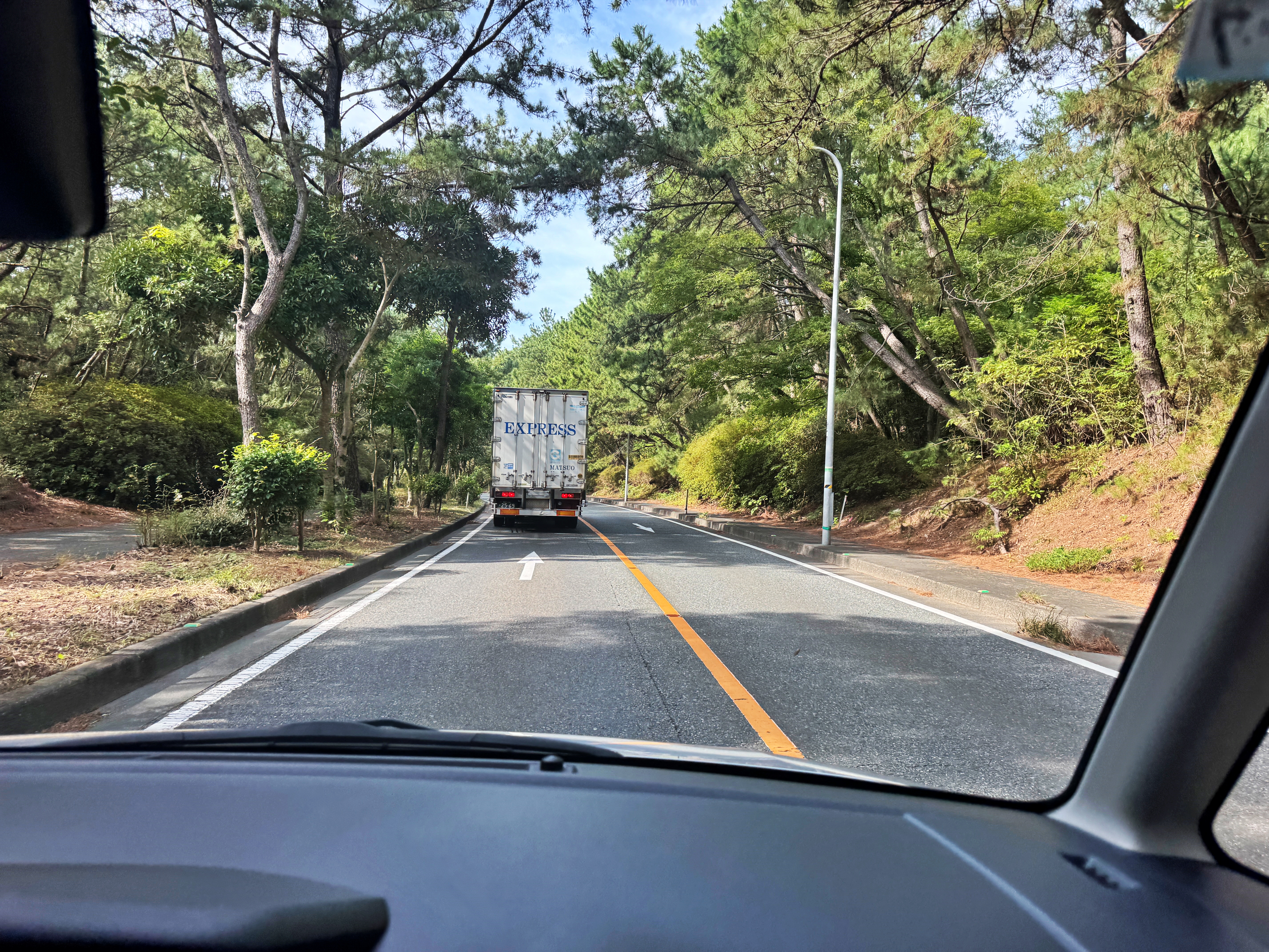 아까 그 화물차를 따라 우미노나카미치 방향으로 들어갑니다.