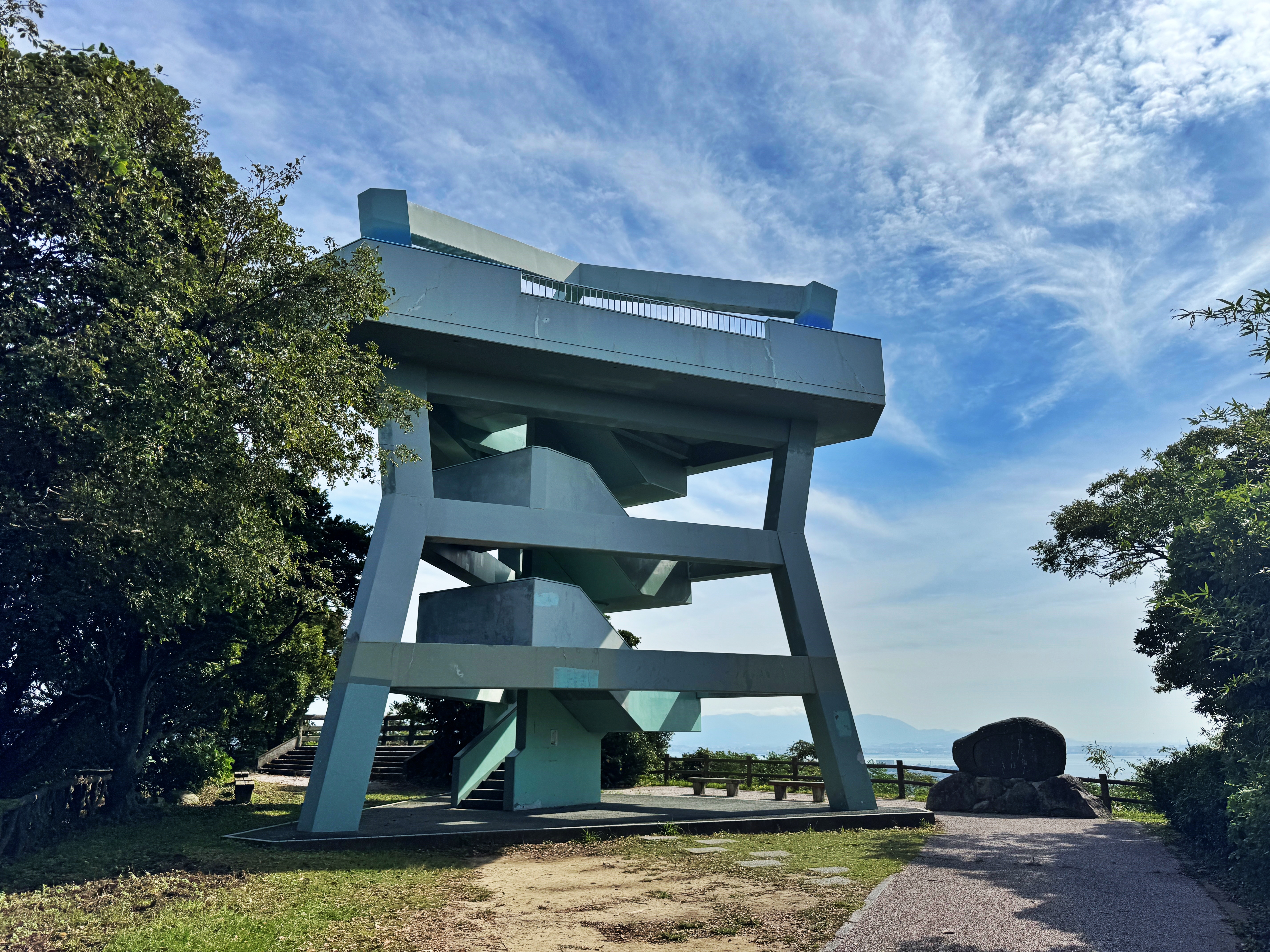 저지대라 범람하는 경우가 있어 다리를 놓았을 뿐이지 하카타만에서 사구로 섬까지 이어져 있습니다. 즉 육지 같은 섬이라는 이야기겠죠. 그렇게 시카노시마로 들어와서 가장 먼저 시오미 공원 전망대(潮見公園展望台)로 향했습니다.