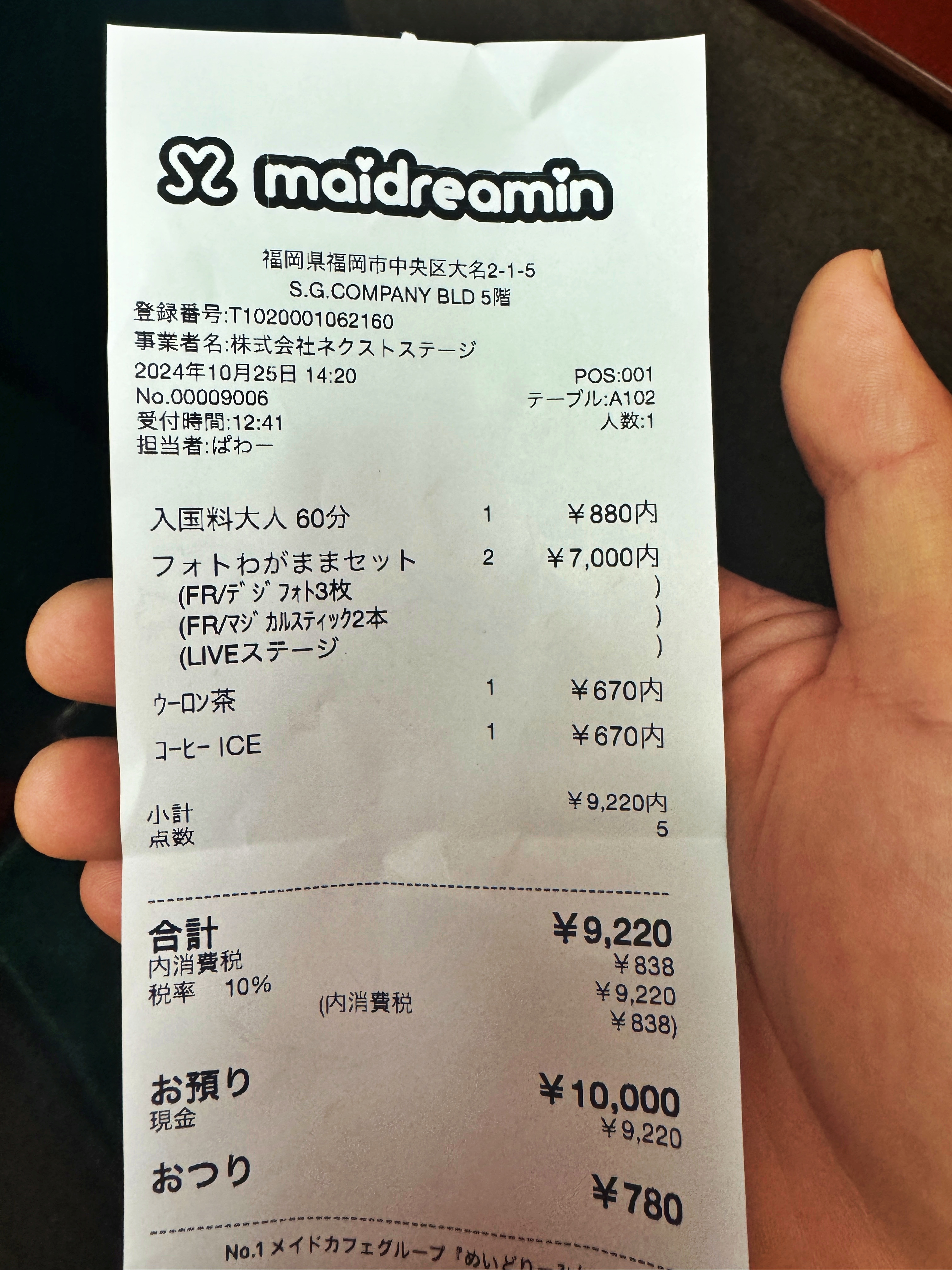 음료를 두 잔 마셔서 9,220엔을 사용했습니다.