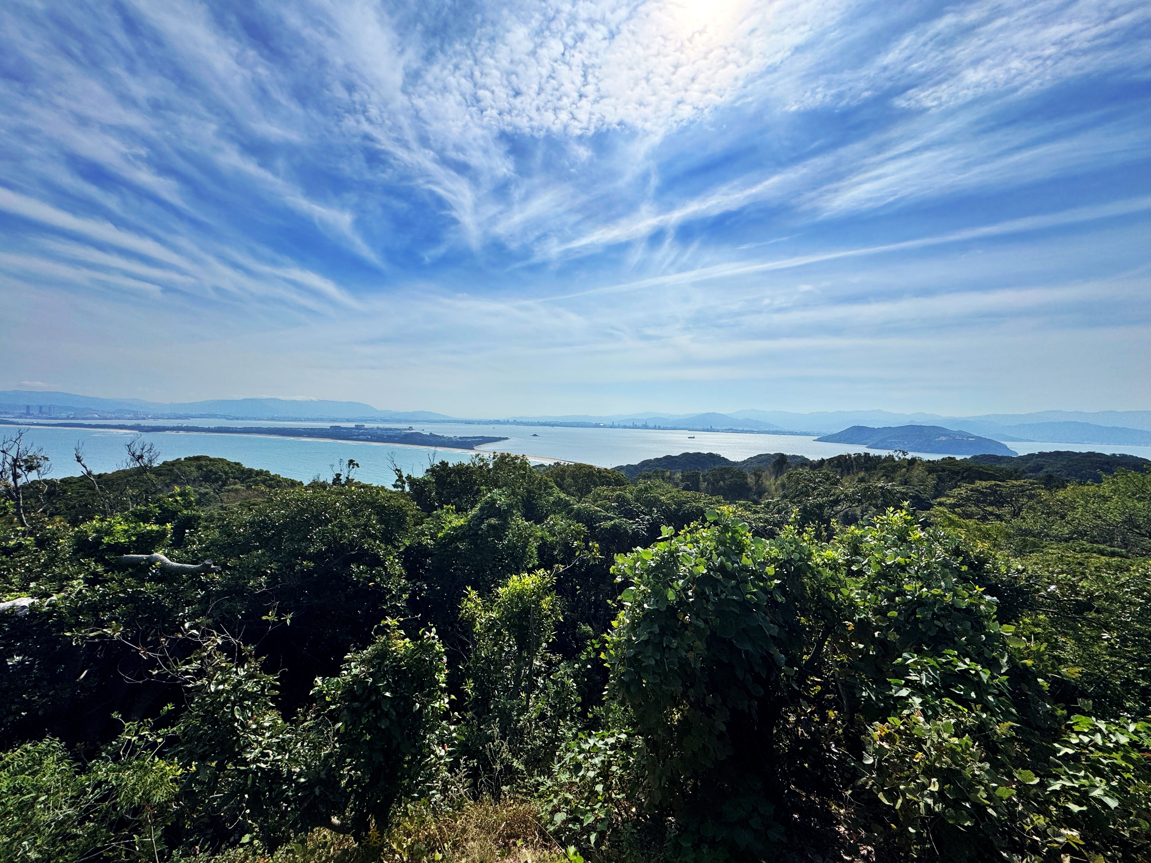 그럼에도 푸른 하늘과 바다를 보고 있노라니 스트레스가 확 풀립니다. 저 멀리 지나온 니지노마쓰바라와 하카나만 너머의 후쿠오카 시내가 보입니다.