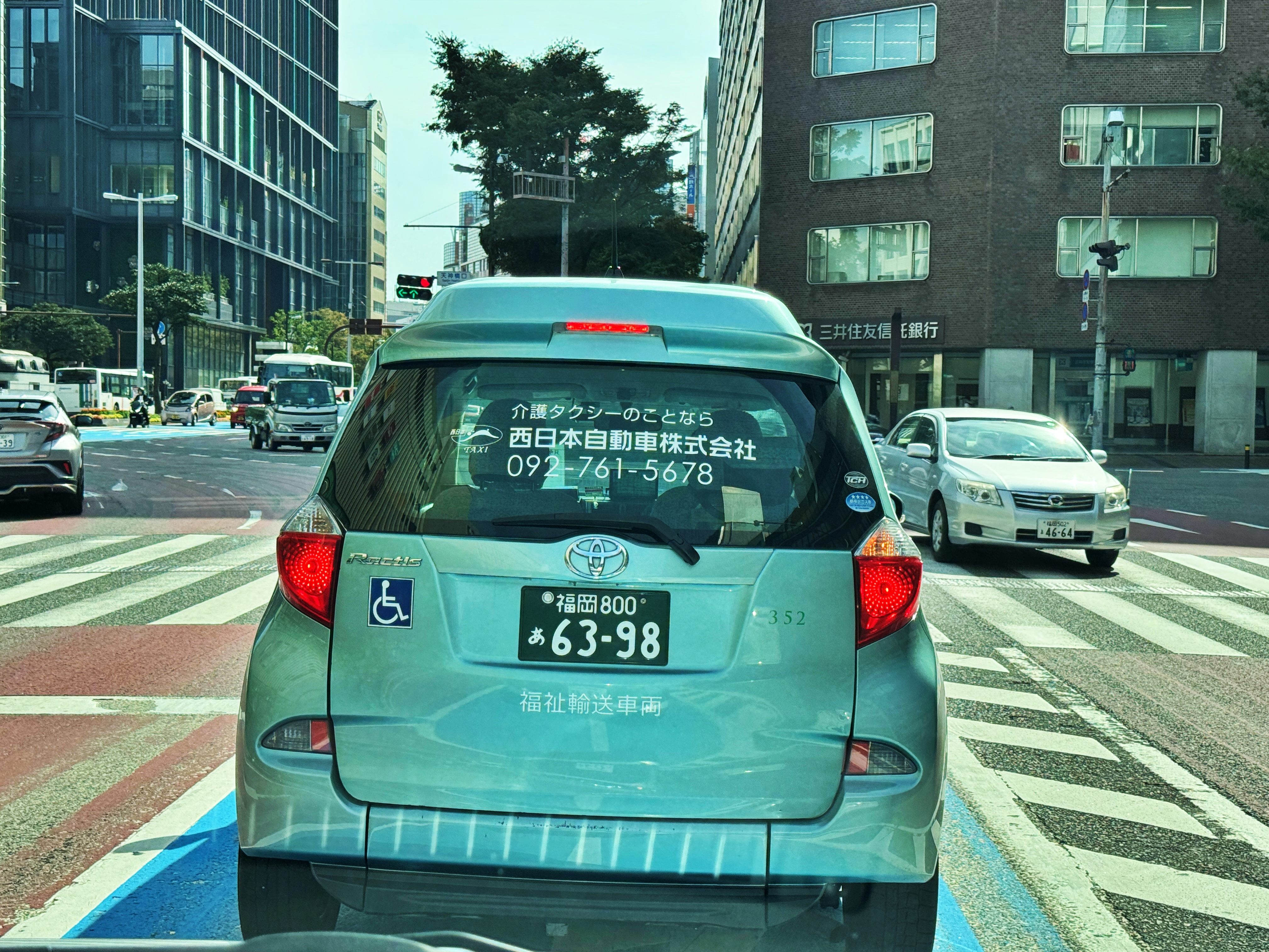 휠체어 리프트가 장착된 차량으로 운행하는데 한국에서는 지자체가 직접 운영하거나 지자체 산하 공기업을 두어 운영하는데 일본은 지역의 택시회사가 이런 장애인용 개호택시까지 운용하는군요. 서일본자동차주식회사는 일반 택시도 운용하는 회사입니다.